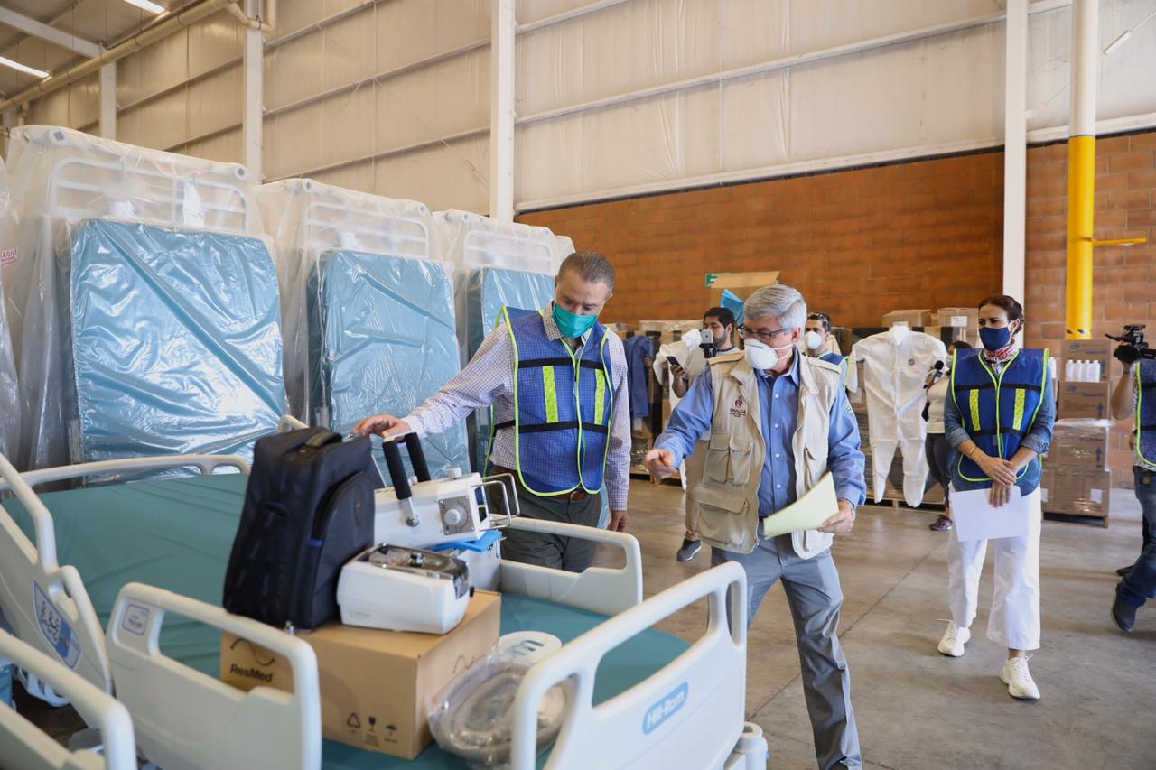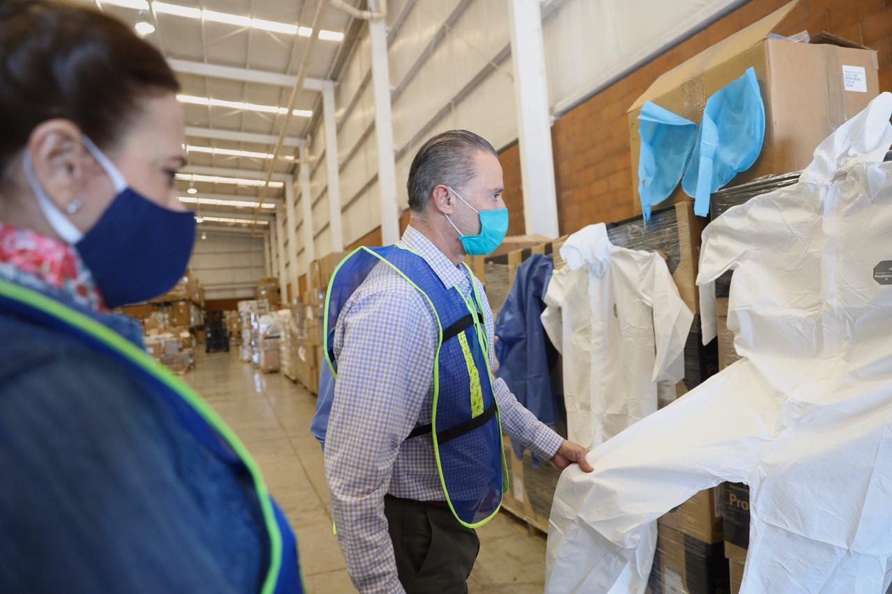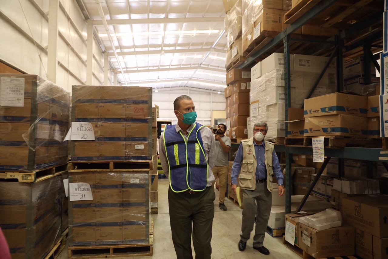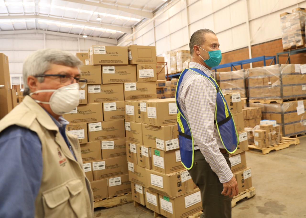 Acompañado por el secretario de Salud, Efrén Encinas Torres; por su esposa Rosy Fuentes de Ordaz, y el empresario Adrián Coppel, el mandatario estatal visitó el Centro Logístico de los Servicios de Salud de Sinaloa, ubicado en el Campo El Diez, desde donde se surtirá este material médico adquirido mediante la inversión extraordinaria de 85 millones de pesos que anunció hace 10 días, así como de alrededor de seis mil artículos diversos, como cubrebocas, batas, guantes, toallas antisépticas, los desfibriladores y equipos de rayos X que fueron donados por el Grupo Coppel.