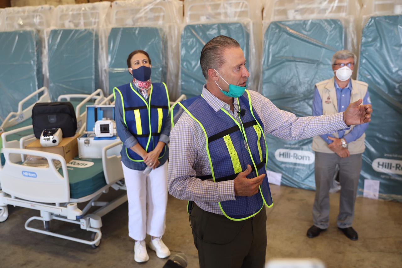 “Necesitamos anticiparnos, esto está llegando y se va a distribuir de manera inmediata, son 160 camas, tenemos cubrebocas, guantes, ven ahí los trajes especiales de protección, líquidos, insumos, medicamentos y equipos de rayos X. Quiero agradecerle a Coppel, está Adrián Coppel acompañándonos, que nos están ellos donando, apoyando a los sinaloenses con miles de guantes, de cubrebocas, están consiguiendo equipos respiratorios de diferentes países para sumarse a la tarea de ayudarnos”, agradeció.