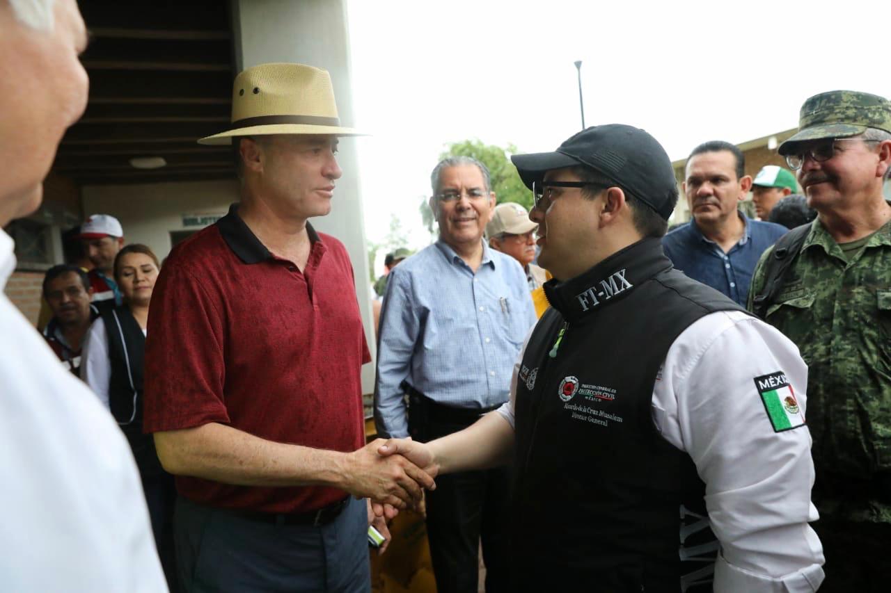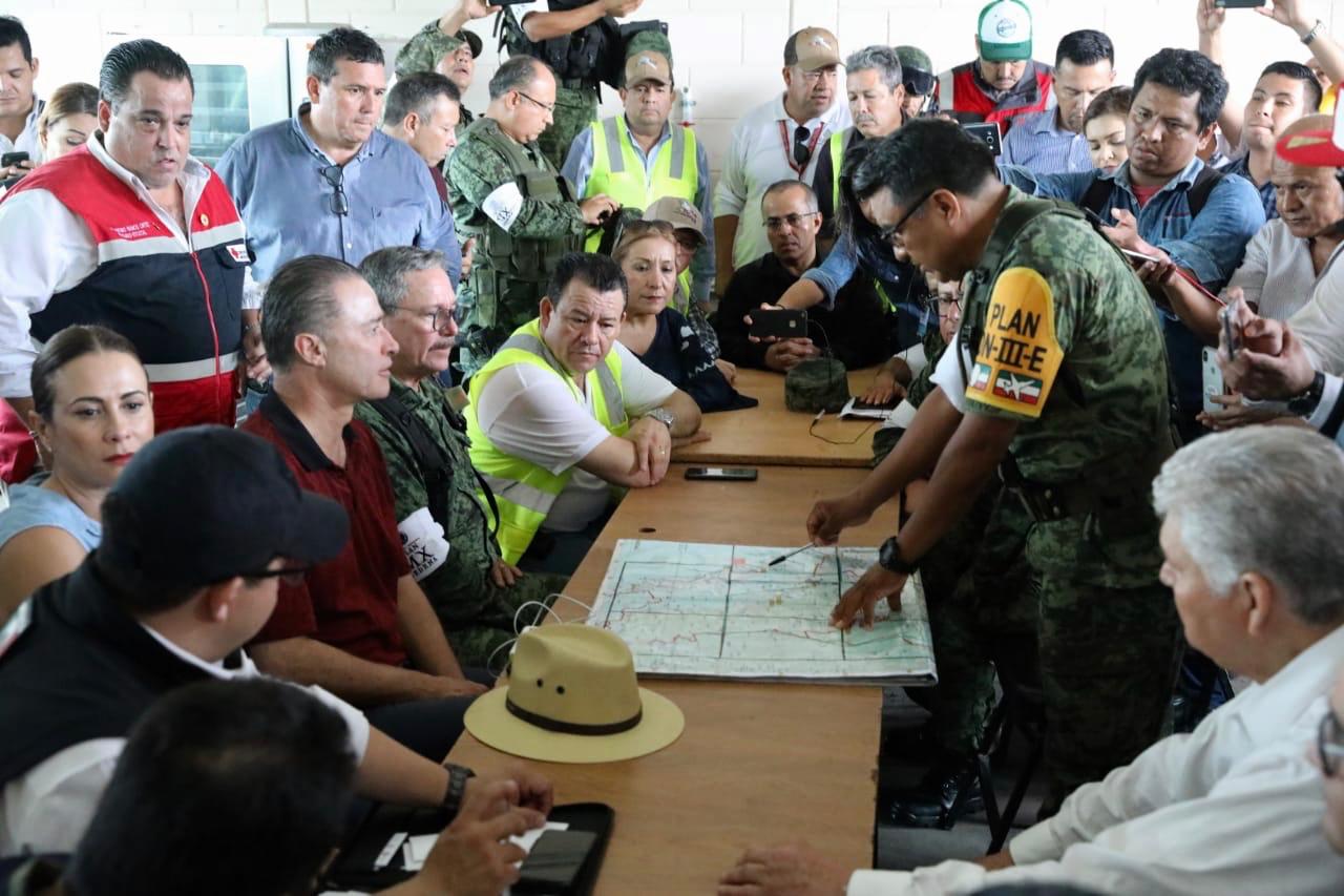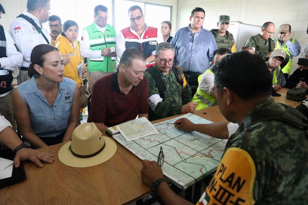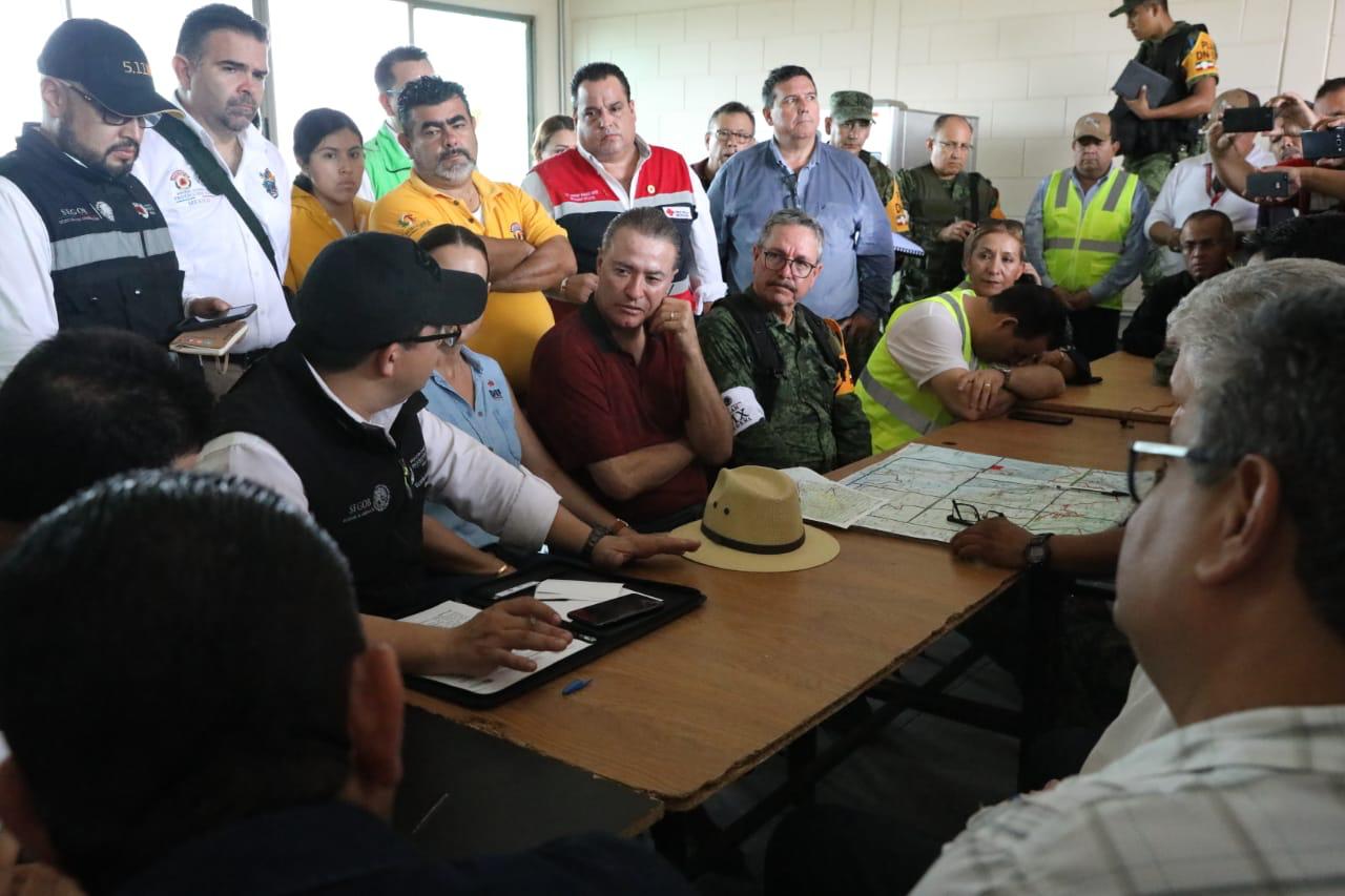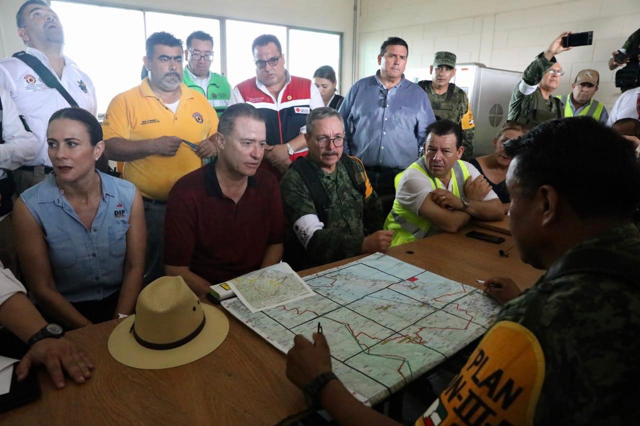 El gobernador Quirino Ordaz Coppel presidió una reunión de evaluación junto con el comandante de la Tercera Región Militar, general de División, André Georges Foullón Van Lissum; el director general de Protección Civil de la Secretaría de Gobernación, Eduardo de la Cruz Musalem, y demás funcionarios federales y estatales, para definir la estrategia a seguir en auxilio a la población.