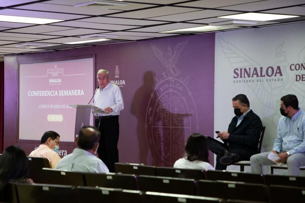 Culiacán, Sinaloa, a 6 de junio del 2022.- Durante su Conferencia Semanera, el gobernador Rubén Rocha Moya abordó el tema del repunte de contagios del COVID-19, pues los casos se han incrementado paulatinamente en las últimas cinco semanas, lo que se considera ya como una quinta ola, sin embargo, precisó que la vacunación generalizada que se llevó a cabo en todo el estado, ha reducido las consecuencias de gravedad de estos nuevos contagios, que ascienden a mil 900 casos positivos, por lo que hizo un llamado a no generar alarma entre la población.