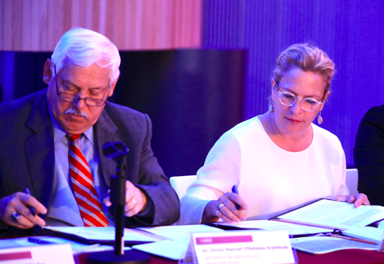 En el marco de la presentación, los secretarios Josefa González Blanco Ortiz Mena y Víctor Villalobos Arámbula, firmaron el Convenio Marco de colaboración general y trabajo coordinado entre Semarnat y Sader.