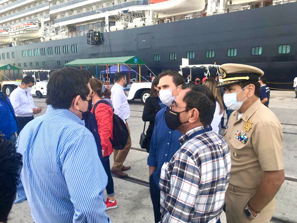 Por ello, esta mañana el Secretario de Salud, Héctor Melesio Cuén Ojeda y Juan José Ruiz González, con la representación de la Secretaria de Turismo de Sinaloa, Ma. Del Rosario Torres Noriega, entre otras autoridades federales, estatales y municipales, acudieron a la terminal marítima de Mazatlán para supervisar los protocolos de sanidad por los que pasan los cruceristas antes de bajar de la embarcación y recorrer los puertos que visitan.