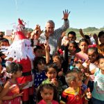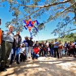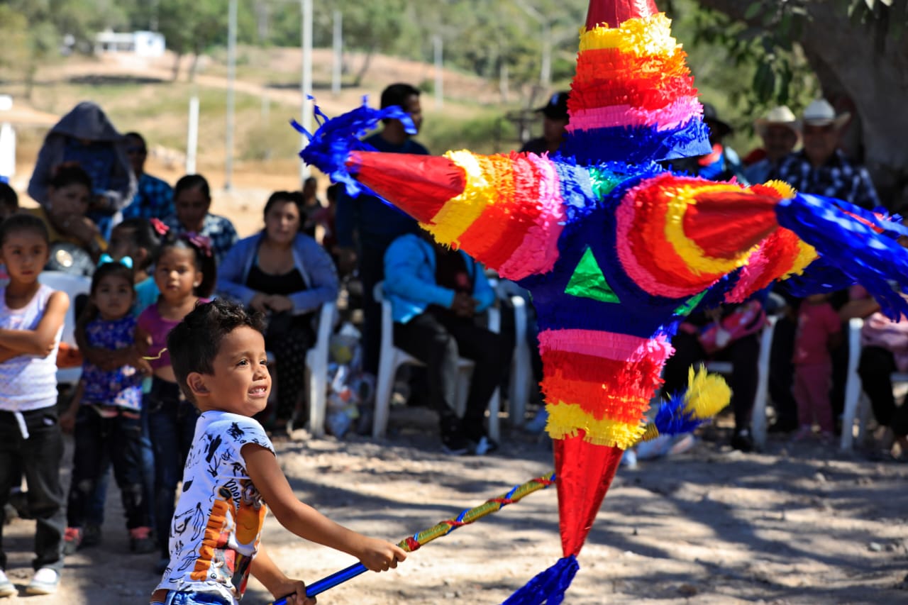 Al finalizar la charla con los pobladores de Santa María, el gobernador convivió con niñas y niños de esta comunidad, a los que ayudó a romper la piñata y les entregó dulces, regalos sorpresa y rifa de bicicletas, además de despensas a las madres y padres de familia, a través del Sistema DIF Sinaloa, y la Secretaría del Bienestar y Desarrollo Sustentable.