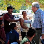 A su llegada a este pueblo donde en una primera etapa se han construido 58 casas con servicios de agua, luz y drenaje, el gobernador saludó a los pobladores presentes, de entre quienes recogió una serie de peticiones, mismas que instruyó inmediatamente para que fueran atendidas.