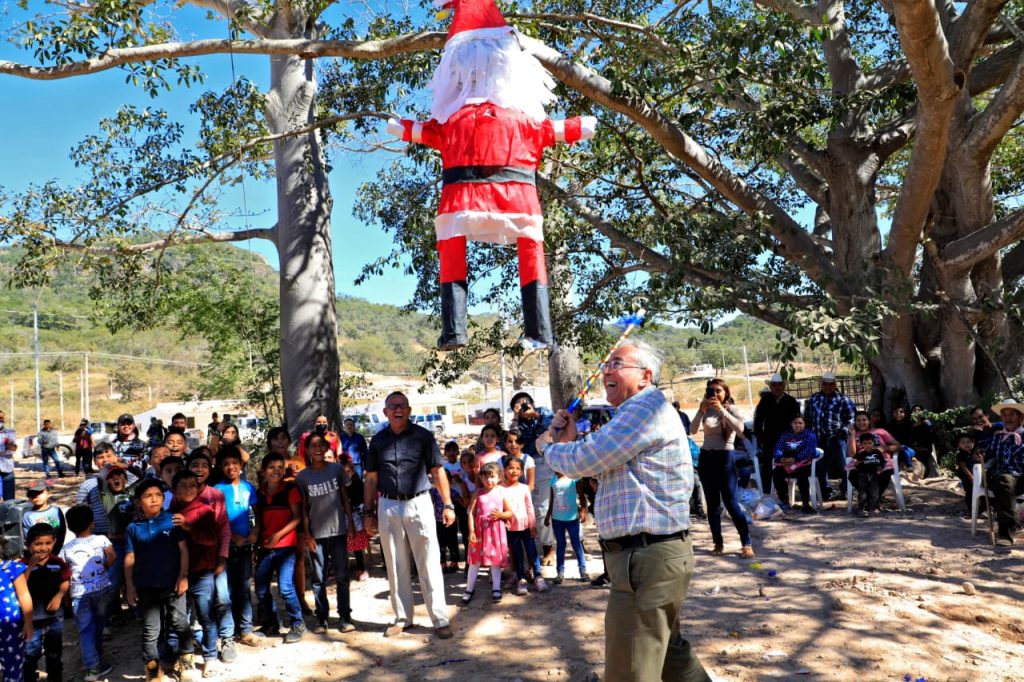 A través del Sistema DIF Estatal, y la SEBIDES, el gobernador llevó sorpresas a niñas y niños de este pueblo.
