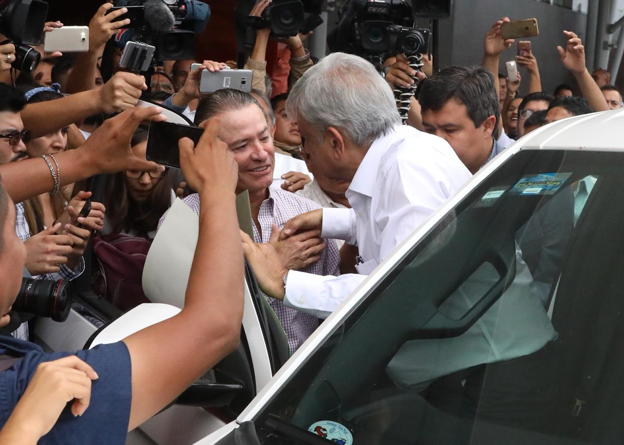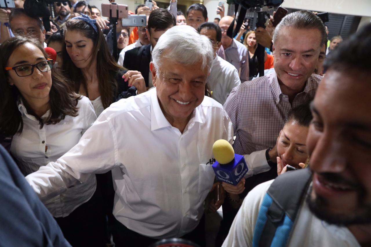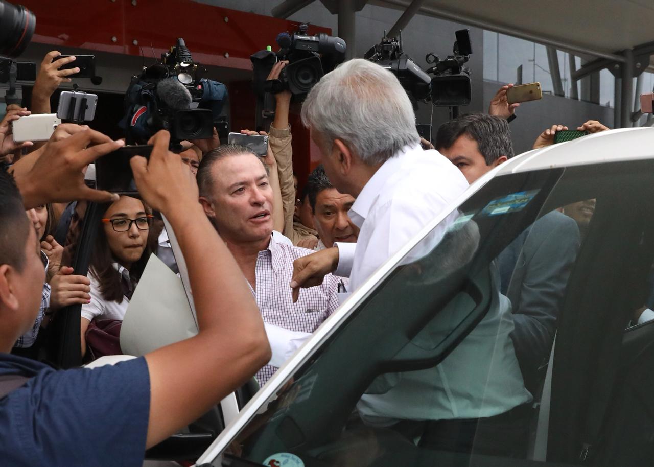 En el aeropuerto, se reúne con el gobernador de Sinaloa.