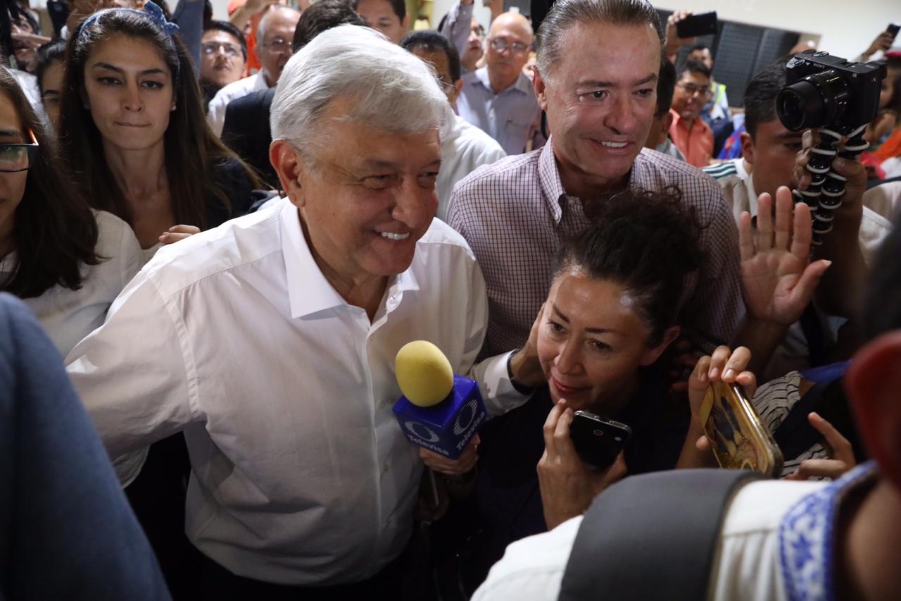 En este recibimiento al presidente de México, también estuvieron los alcaldes de Mazatlán y Culiacán, Luis Guillermo Benítez Torres, y Jesús Estrada Ferreiro, respectivamente.