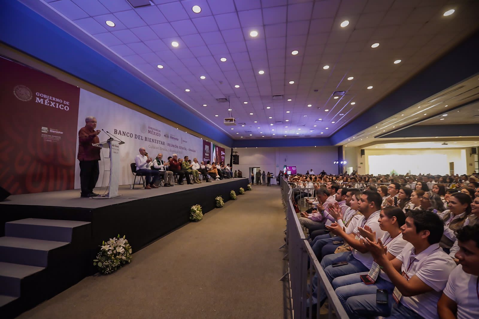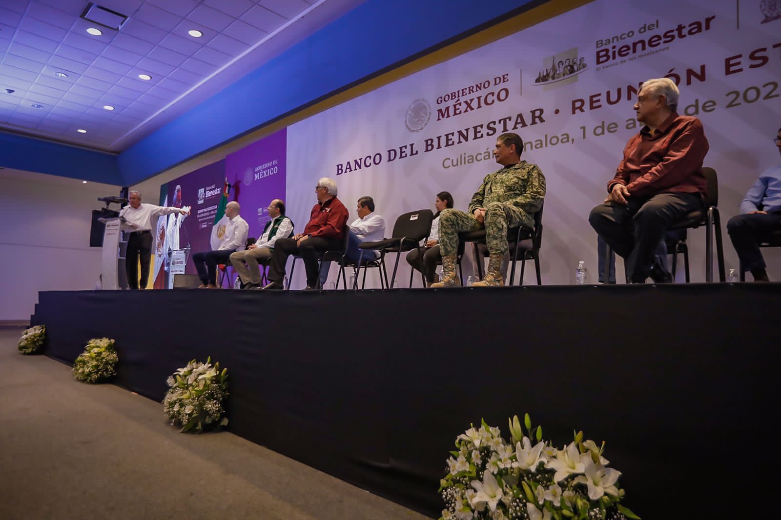 En la capital del Estado , el mandatario federal sostuvo un encuentro con Servidores de la Nación y titulares de los diversos programas federales en el Salón 53 , donde el jefe del Ejecutivo federal manifestó que en Sinaloa casi 400 mil personas son beneficiarias de alguno de los apoyos que se dispersan .
