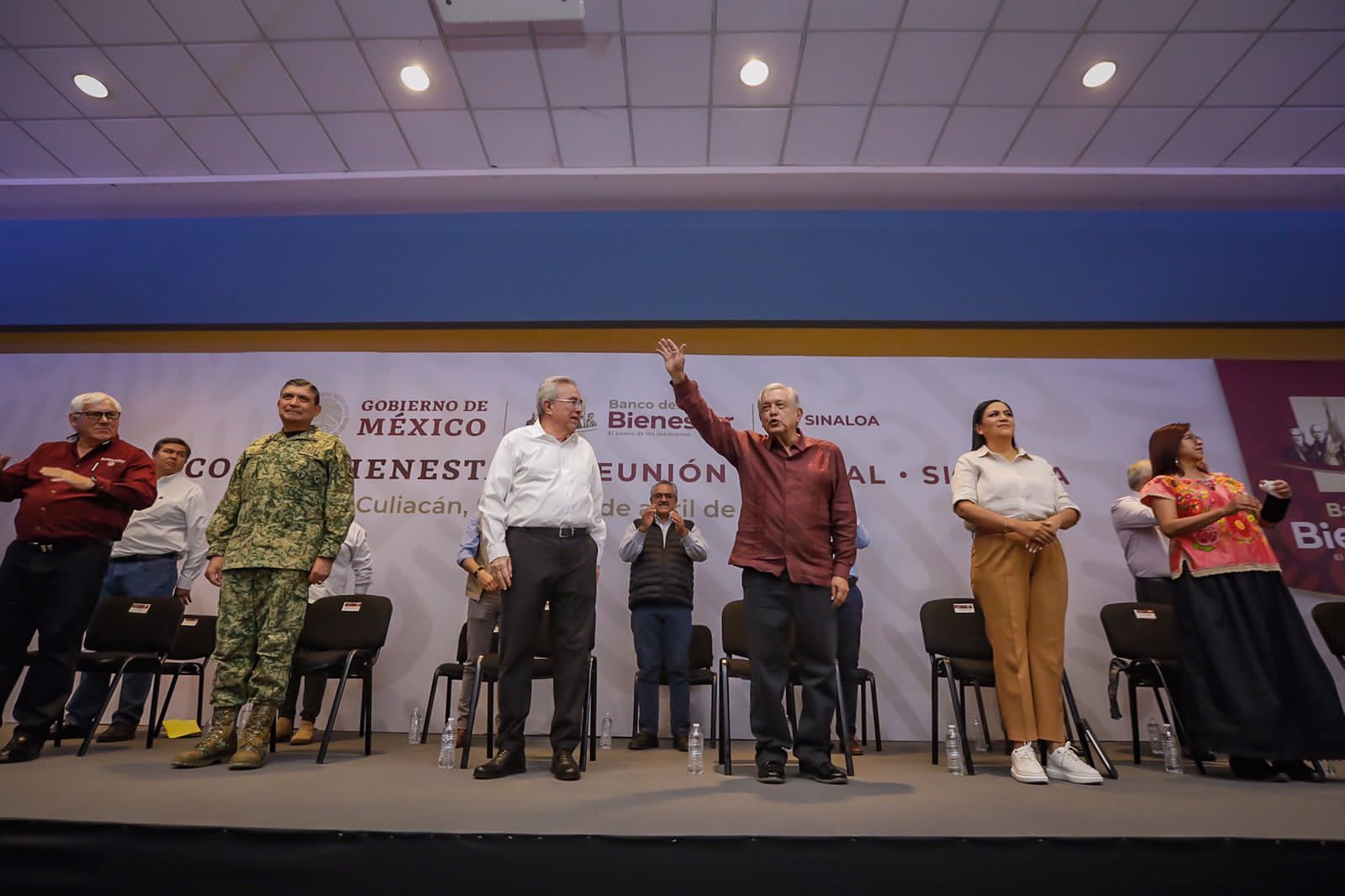 Culiacán Sinaloa, a 1 de abril de 2023.- El gobernador de Sinaloa Rubén Rocha Moya acompañó al presidente de la República Andrés Manuel López Obrador en su gira de trabajo este sábado por la entidad .