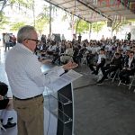 La bienvenida estuvo a cargo de la directora Norma Leyva Velarde, quien aprovechó la visita del gobernador Rocha para agradecerle en persona el haber atendido las peticiones que le había hecho anteriormente, como es la construcción de un salón de usos múltiples y el equipamiento del aula de cómputo, acciones de gobierno de las cuales ya se benefician 900 alumnos de este plantel.