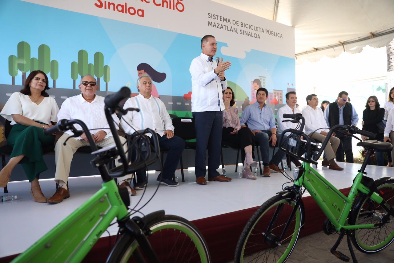 Mazatlán, Sinaloa a 01 de febrero del 2019.- El Gobernador Quirino Ordaz Coppel inauguró el primer sistema de bicicleta pública “Muévete Chilo Sinaloa”, un servicio eficiente, saludable, seguro, ecológico y a un bajo costo, llevando a Mazatlán a la vanguardia en movilidad sustentable.