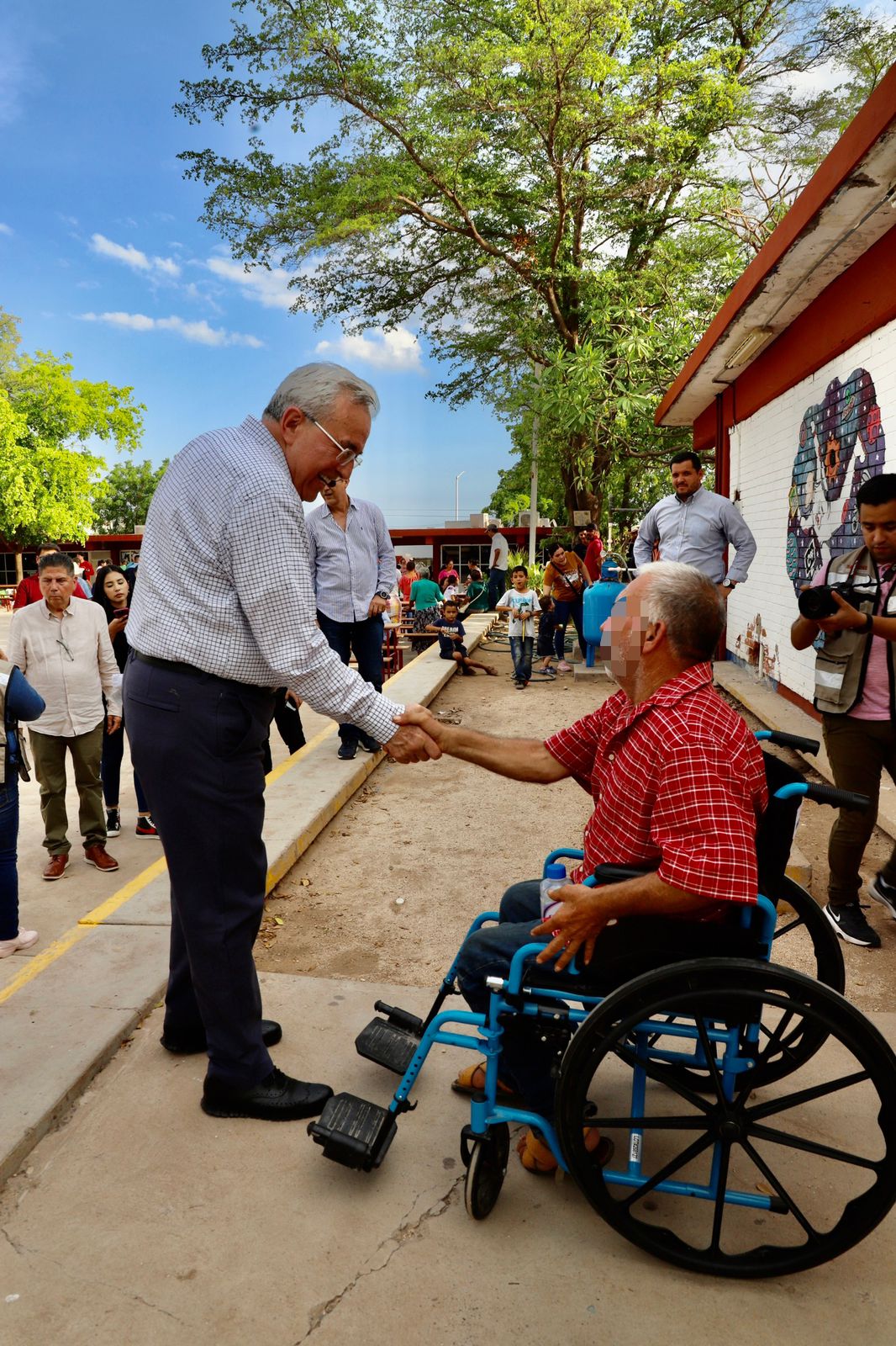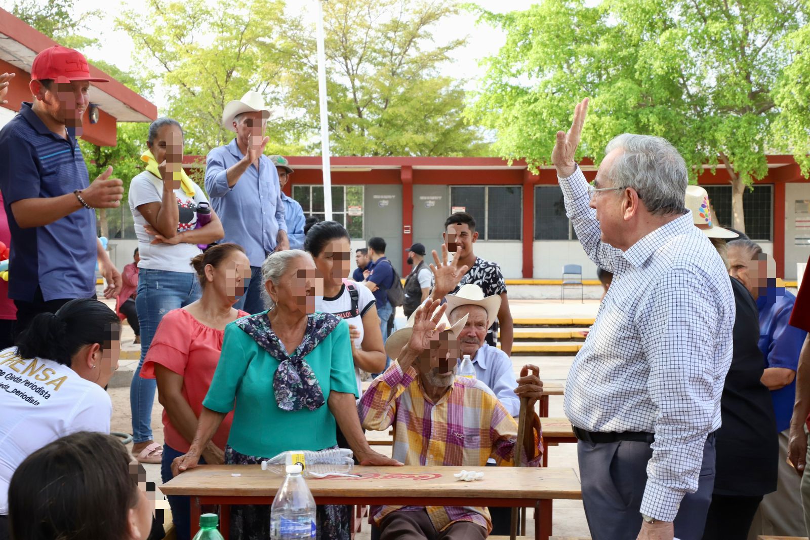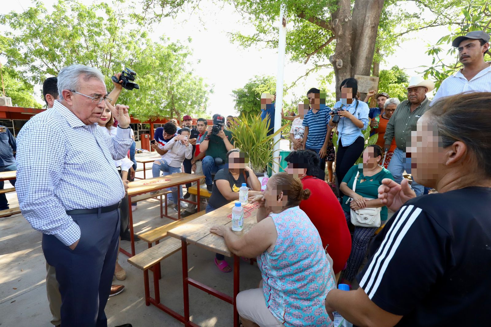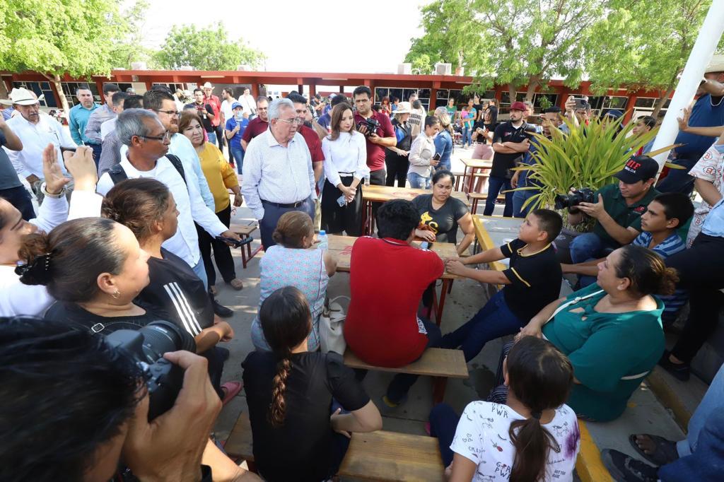 Salvador Alvarado, Sinaloa, 01 de agosto del 2023.- El gobernador Rubén Rocha Moya asistió al refugio temporal ubicado en el Centro Bachillerato Tecnológico Industrial y de Servicios No. 45, en la ciudad de Guamúchil en donde tuvo un acercamiento con las personas del municipio de Sinaloa y Mocorito quienes fueron desplazadas de sus hogares, a quienes les aseguró que no se encuentran solos ya que desde el gobierno se atienden las necesidades para resolver el problema y que pronto puedan volver a sus hogares.
