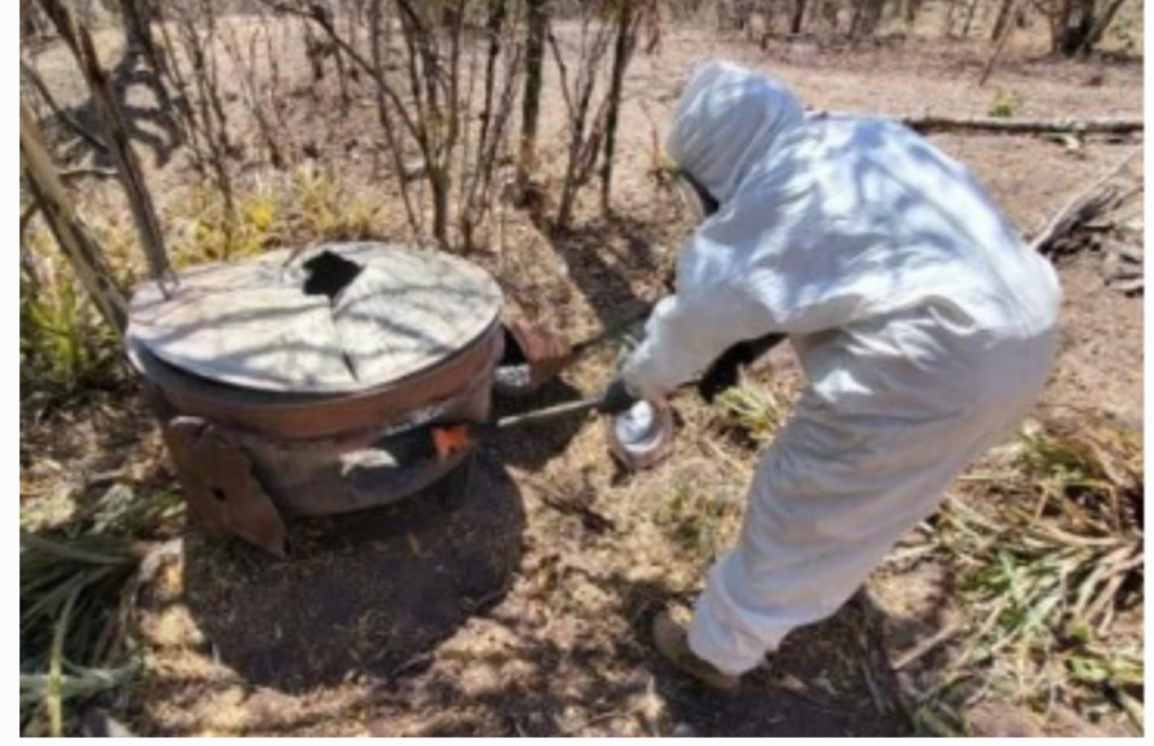 A través de trabajos de reconocimiento en los municipios de Culiacán y Cosalá, personal militar localizó asentamientos utilizados para la fabricación de drogas sintéticas, con diversas sustancias químicas, mezcladoras, reactores, bidones, tambos, barriles, costales, condensadores, centrifugadores, entre otros.