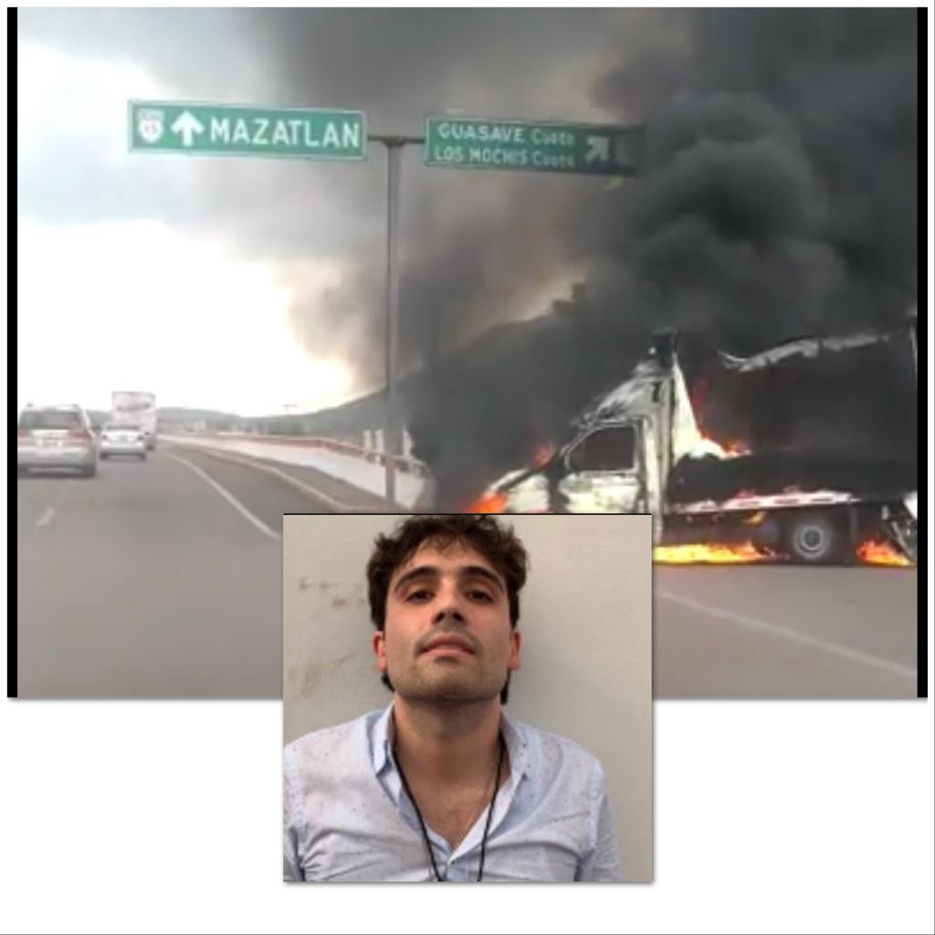 Ciudad de México, Jueves 17 de octubre, 2019 (LA JORNADA). Después de los enfrentamientos entre grupos delictivos y elementos de seguridad que tuvieron lugar en Culiacán esta tarde, liberan a Ovidio Guzmán hijo de «El Chapo» para “pacificar” a Culiacán.
