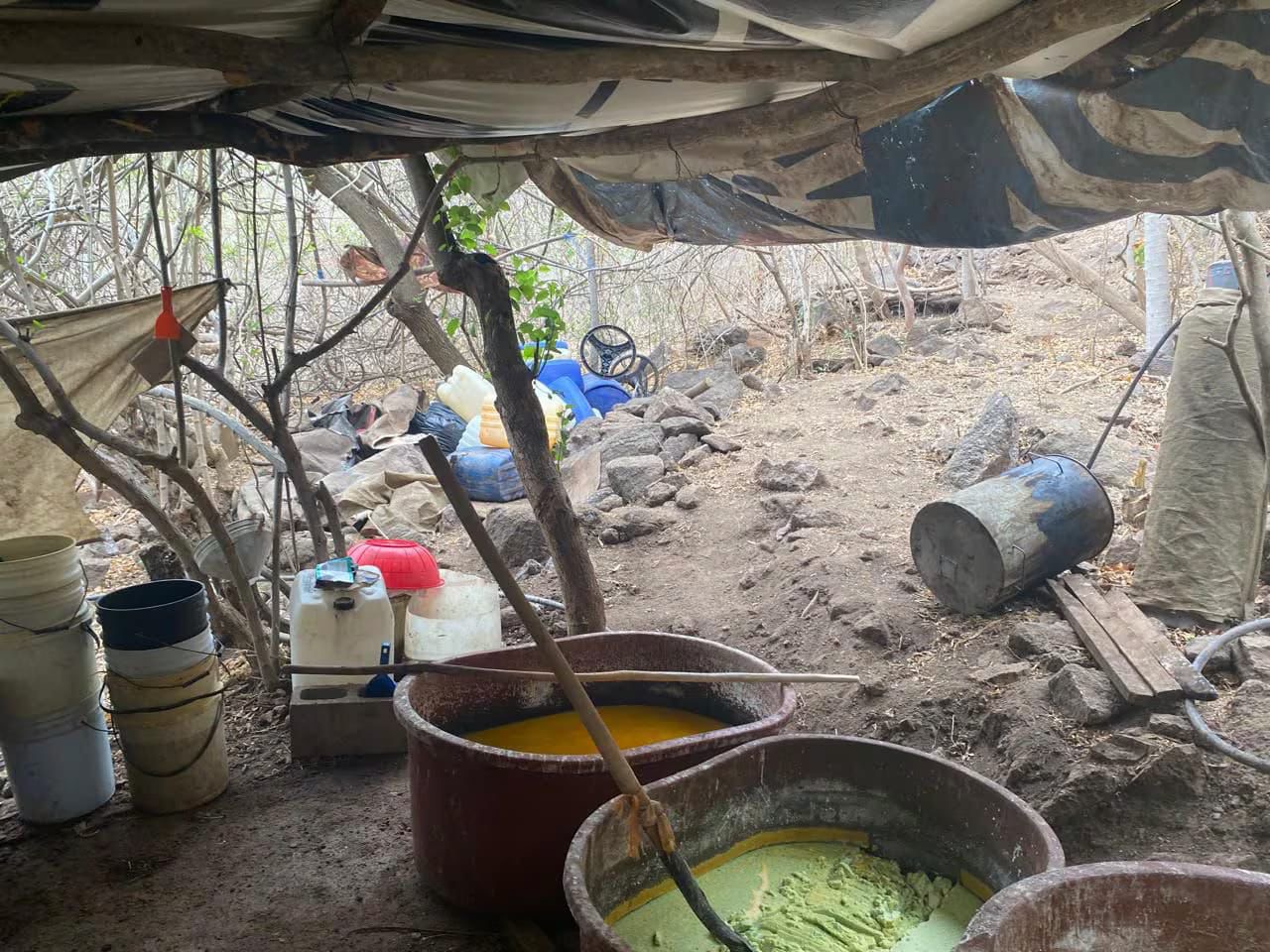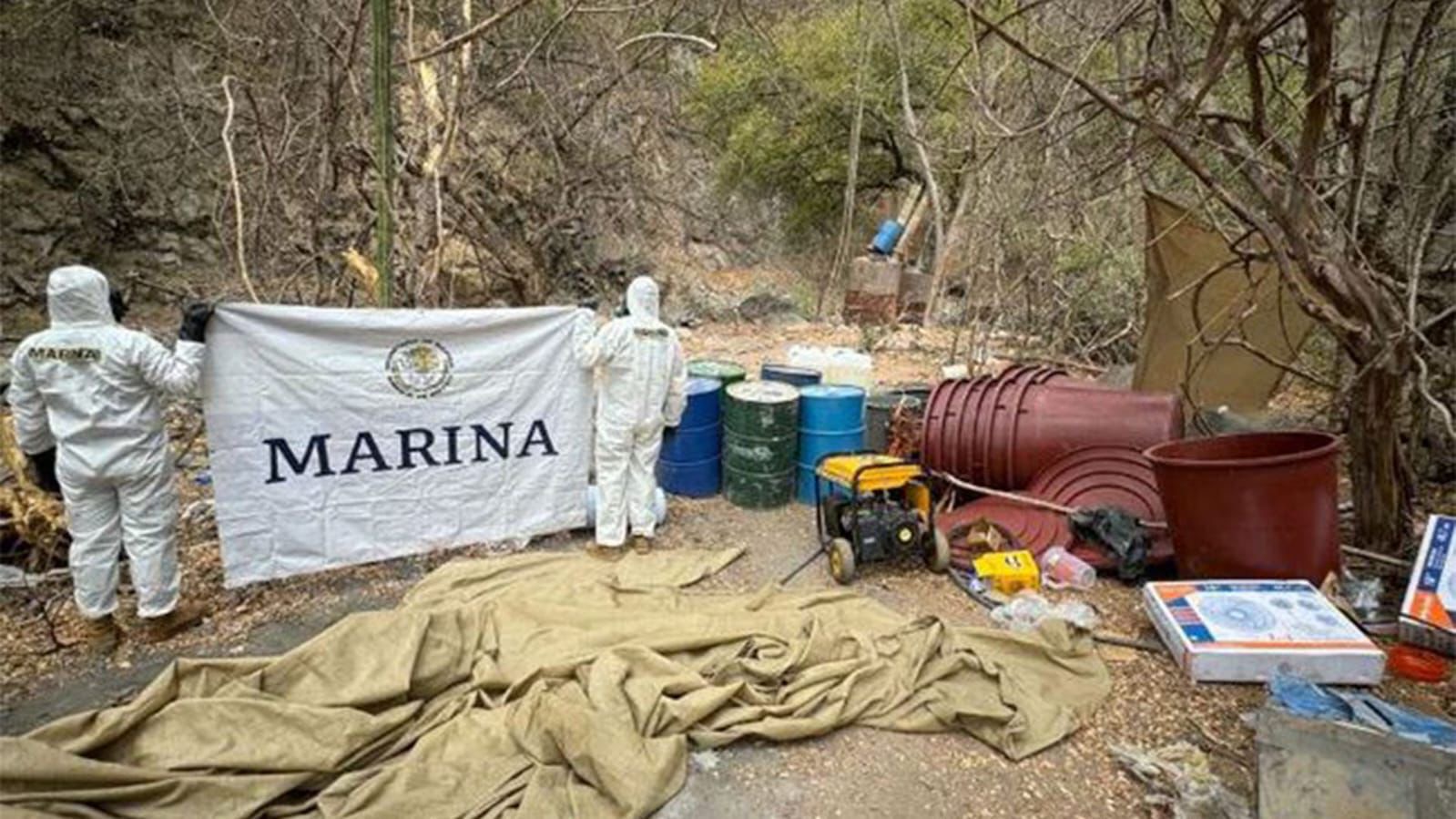 MÉXICO.- Personal naval, con apoyo de un helicóptero, en coadyuvancia con la FGR, localizó y neutralizó tres laboratorios clandestinos para la elaboración de droga sintética, asegurando aproximadamente 5,307 (cinco mil trecientos siete) kilogramos de producto terminado (presunta metanfetamina), 4,125 (cuatro mil ciento veinticinco) kilogramos de precursores químicos, cuatro reactores, tres condensadores y material diverso, en inmediaciones de los poblados de “El Tecomate” y “Las Flechas”, en Culiacán, Sin., a 229 kilómetros al sureste de la Octava Zona Naval.