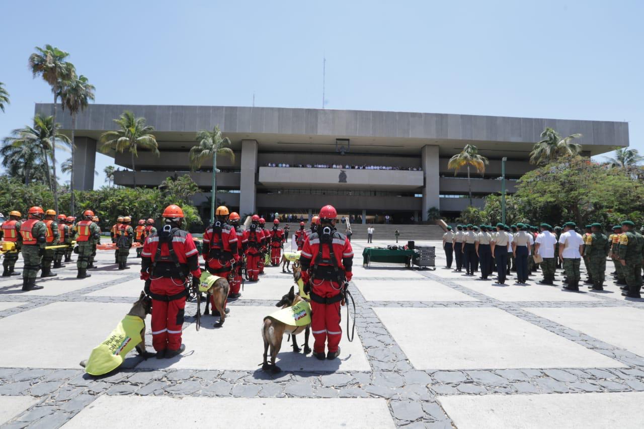 Luego del evento, que tuvo lugar en el Salón de Gobernadores, y que fue moderado por el director del Instituto Estatal de Protección Civil, Francisco Vega Meza, se llevó a cabo una exhibición de la fuerza de reacción del Plan DN-III-E, coordinada por el comandante de la Novena Zona Militar, general de Brigada, Maximiliano Cruz Ramos.
