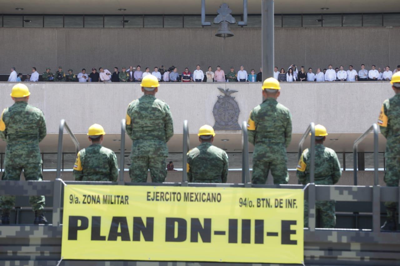 En lo que se refiere a la instalación del Consejo Estatal de Protección Civil, el gobernador del estado hizo un reconocimiento a la participación y coordinación de todas las dependencias involucradas, en especial del Ejército Mexicano, con su Plan DN-III-E y a la Marina Armada de México, cuyos elementos son los primeros respondientes ante los desastres naturales.