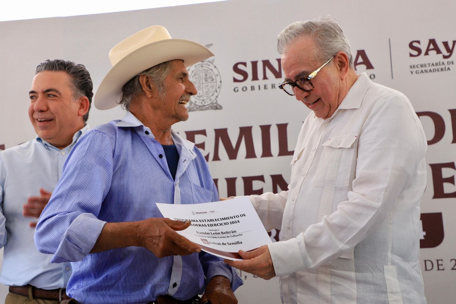 El mandatario estatal encabezó la entrega de semilla para el programa de establecimiento de praderas y garantizar el alimento para el ganado.