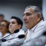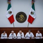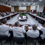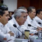 Culiacán, Sinaloa, a 14 de Octubre de 2022.- En las instalaciones del Congreso del Estado, en el marco de la reunión de socialización con legisladores locales de la minuta de reforma constitucional que contiene la ampliación del plazo para la coadyuvancia de la Guardia Nacional en tareas de seguridad, encabezada por Adán Augusto López Hernández, Secretario de Gobernación Federal y Moisés Ignacio Mier Velazco, Presidente de la Junta de Coordinación Política de la Cámara de Diputados, el Gobernador Rubén Rocha Moya, tras escuchar los distintos puntos de vista de las fracciones parlamentarias, planteó la importancia de construir consensos que permitan la permanencia de las autoridades federales en las labores de seguridad pública.