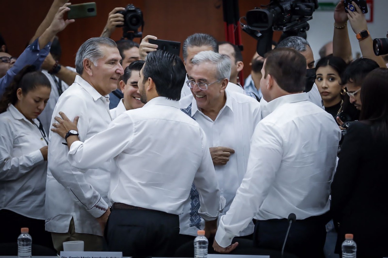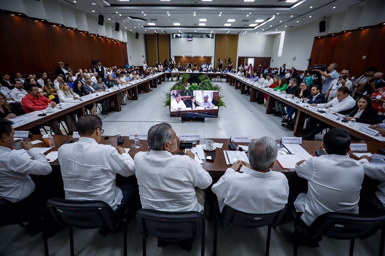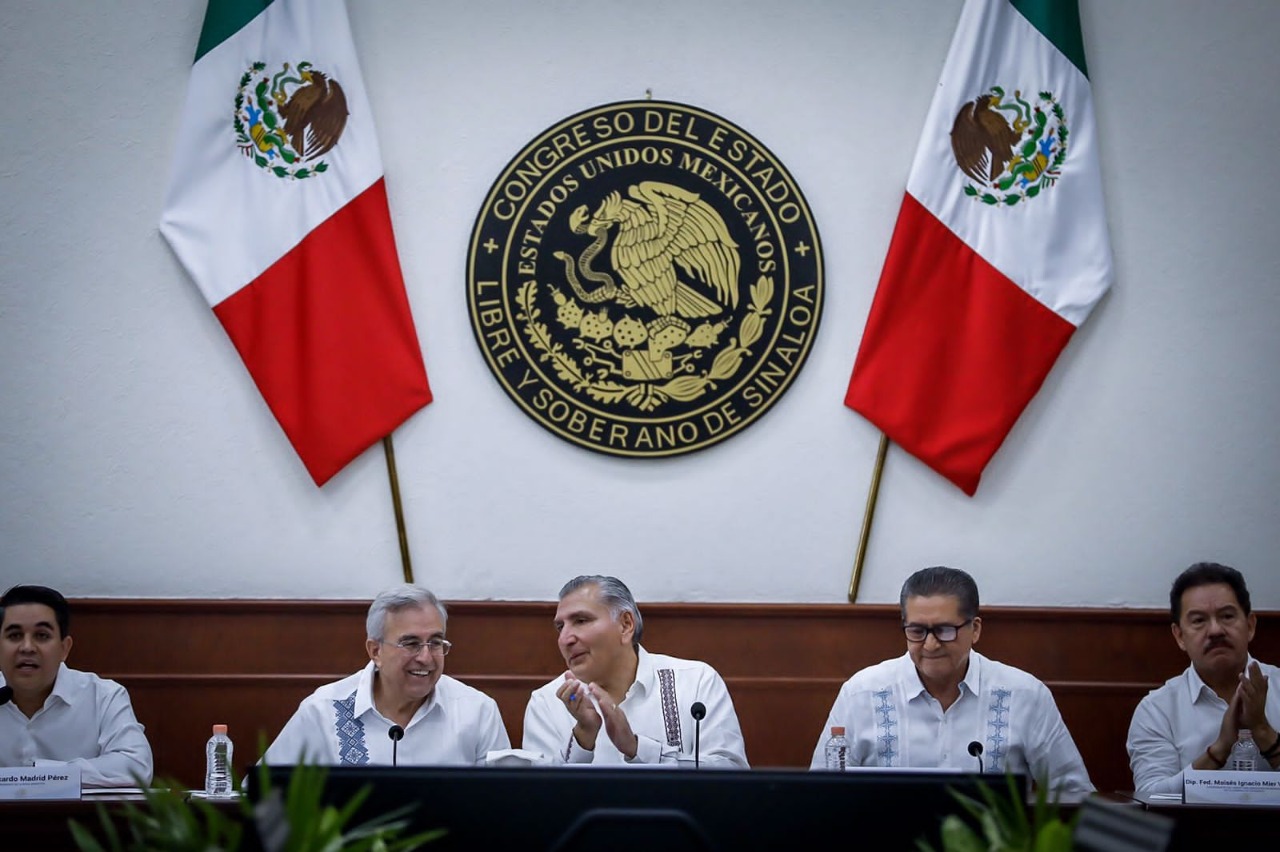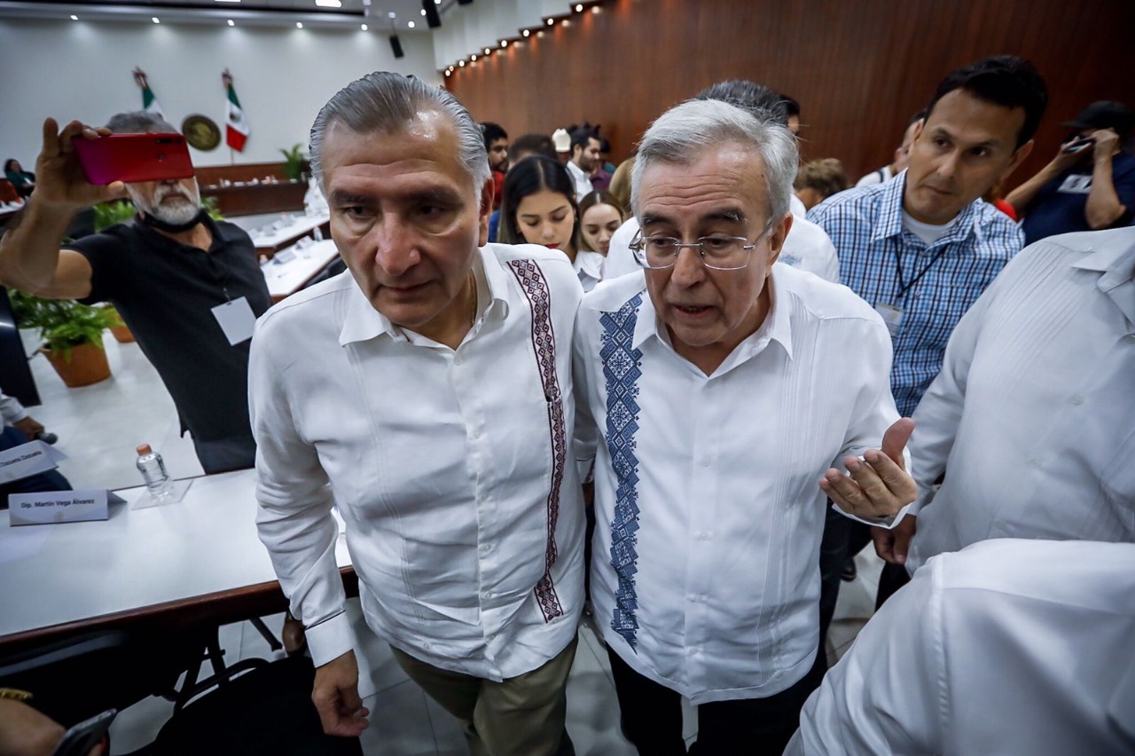 Culiacán, Sinaloa, a 14 de Octubre de 2022.- En las instalaciones del Congreso del Estado, en el marco de la reunión de socialización con legisladores locales de la minuta de reforma constitucional que contiene la ampliación del plazo para la coadyuvancia de la Guardia Nacional en tareas de seguridad, encabezada por Adán Augusto López Hernández, Secretario de Gobernación Federal y Moisés Ignacio Mier Velazco, Presidente de la Junta de Coordinación Política de la Cámara de Diputados, el Gobernador Rubén Rocha Moya, tras escuchar los distintos puntos de vista de las fracciones parlamentarias, planteó la importancia de construir consensos que permitan la permanencia de las autoridades federales en las labores de seguridad pública.