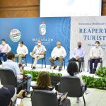 Mazatlán.- El Químico Benitez Torres y el Gobernador Quirino Ordaz Coppel encabezaron hoy en la Sala de Cabildo del Ayuntamiento, la presentación del Plan de Apertura de Servicios Turísticos en Sinaloa, que será a partir del próximo miércoles 1 de julio.