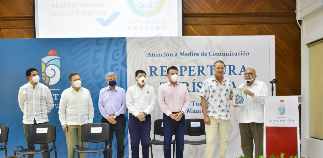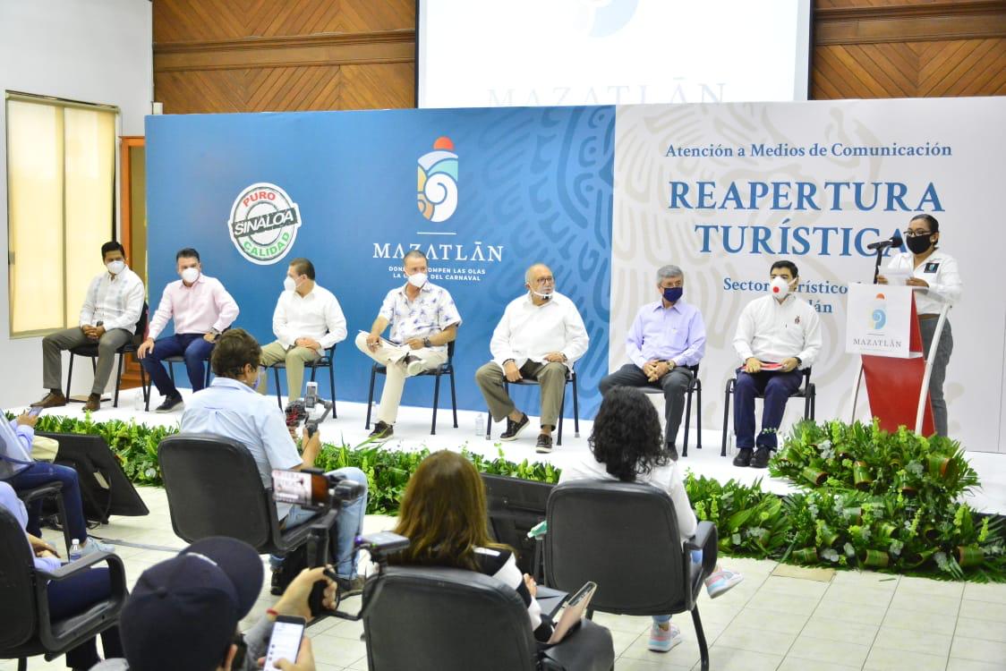 Mazatlán.- El Químico Benitez Torres y el Gobernador Quirino Ordaz Coppel encabezaron hoy en la Sala de Cabildo del Ayuntamiento, la presentación del Plan de Apertura de Servicios Turísticos en Sinaloa, que será a partir del próximo miércoles 1 de julio.