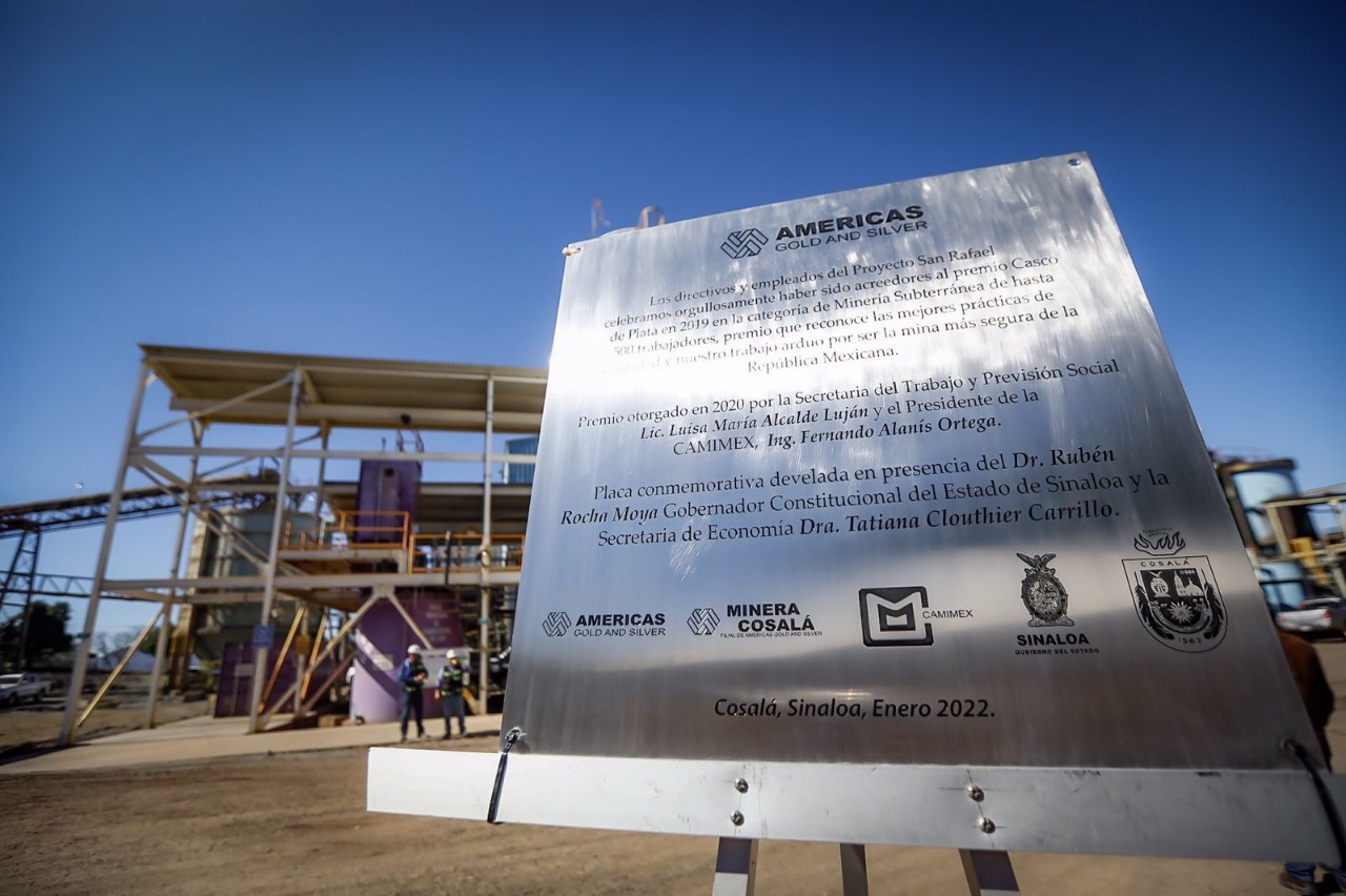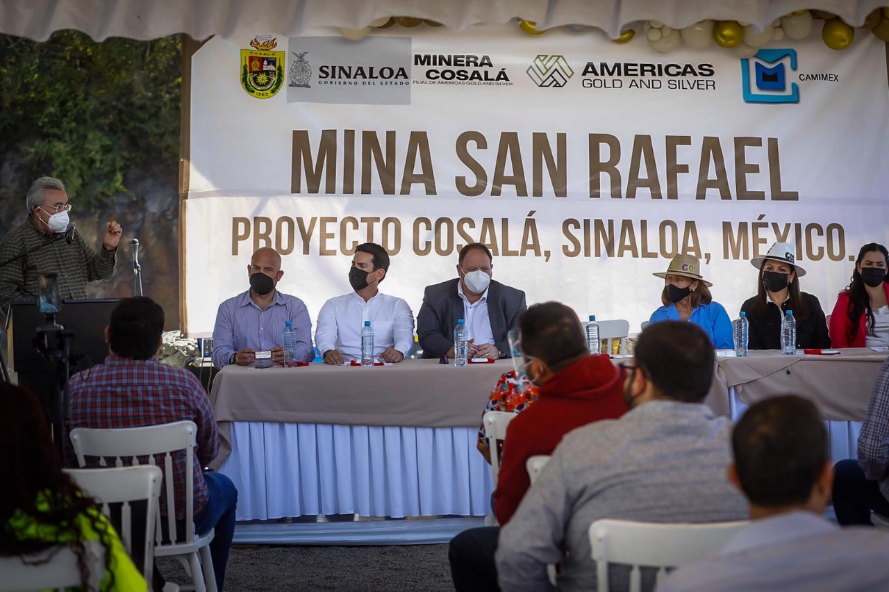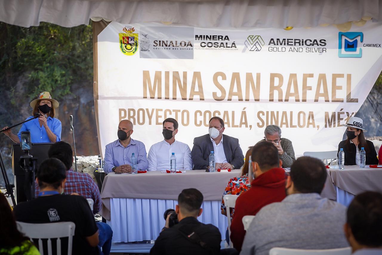 Cosalá, Sinaloa, a 21 de enero de 2022.- Luego de un largo periodo de 19 meses en los cuales estuvo cerrada, la mina San Rafael, de la empresa canadiense America’s Gold & Silver, reinició operaciones, con una inversión de 30 millones de dólares, que son más de 600 millones de pesos, y para ello, el gobernador Rubén Rocha Moya, acompañado por la secretaria de Economía, Tatiana Clouthier Carrillo, puso en marcha los trabajos de reapertura de esta empresa que genera 300 empleos permanentes.