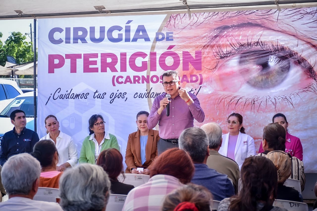 El Alcalde de Mazatlán, en su intervención, destacó que la institución que encabeza su esposa, siempre están innovando los programas ya establecidos para ofrecer una mejor cobertura en atención en materia de salud a la población vulnerable, como lo es la Campaña de Cirugías gratuitas de Pterigión (carnosidad en los ojos).