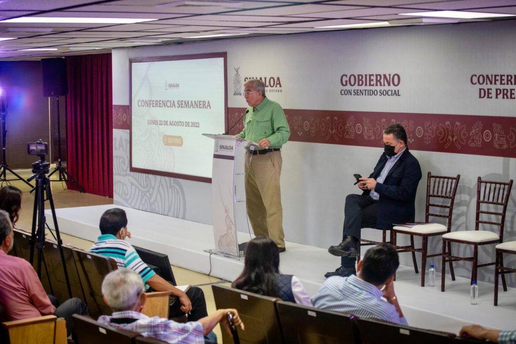 Culiacán, Sinaloa, 22 de agosto de 2022.- El gobernador Rubén Rocha Moya dio a conocer que el dinero recaudado por la legalización de vehículos usados de procedencia extranjera, conocidos coloquialmente como “autos chocolate”, se destinará para la rehabilitación de carreteras afectadas por las lluvias y en la pavimentación de calles en comunidades en todos los municipios.