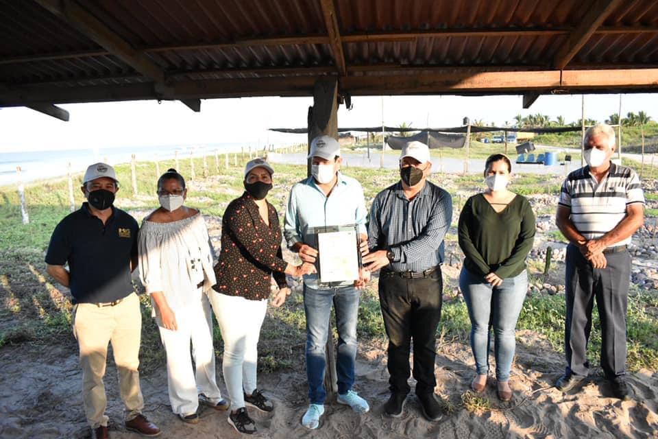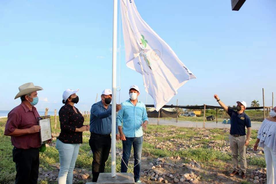 El Secretario de Desarrollo Sustentable, Carlos Gandarilla García y el alcalde Geovani Escobar Manjarrez izaron la bandera que distinguirá a Ceuta como espacio de conservación, que cuenta además con un santuario de la tortuga marina y que anualmente recibe más de 10 mil visitas que disfrutan de vivir la experiencia de liberar y conocer más de estas especies.