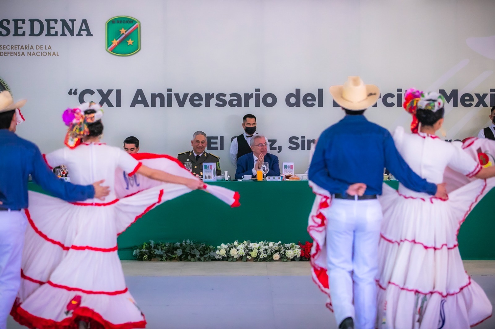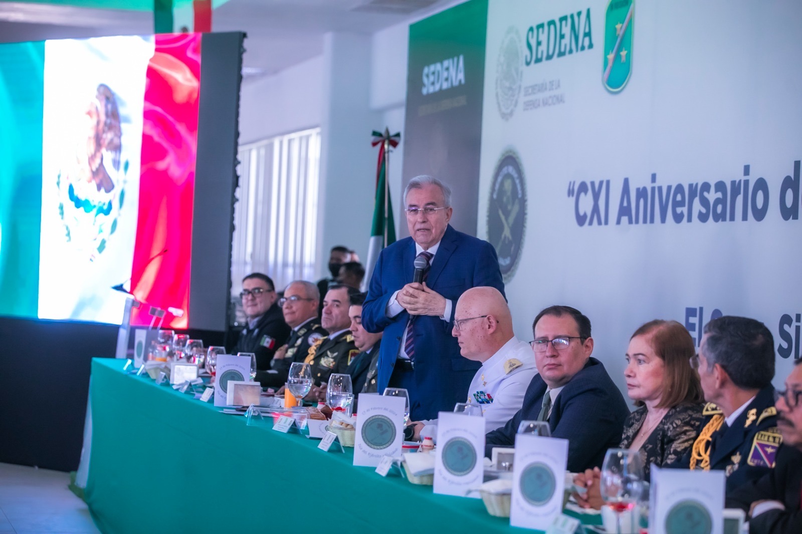 Durante la ceremonia de este 111 aniversario del Día del Ejército, la bienvenida estuvo a cargo del comandante de la Novena Zona Militar, general de Brigada, Porfirio Fuentes Vélez, quien dijo que en este marco, las mujeres y hombres que forman parte de esta institución, refrendan su compromiso de defender a la sociedad sinaloense, a las instituciones de la Nación, y al pueblo de México, expresando al mismo tiempo su lealtad y gratitud por la confianza depositada.