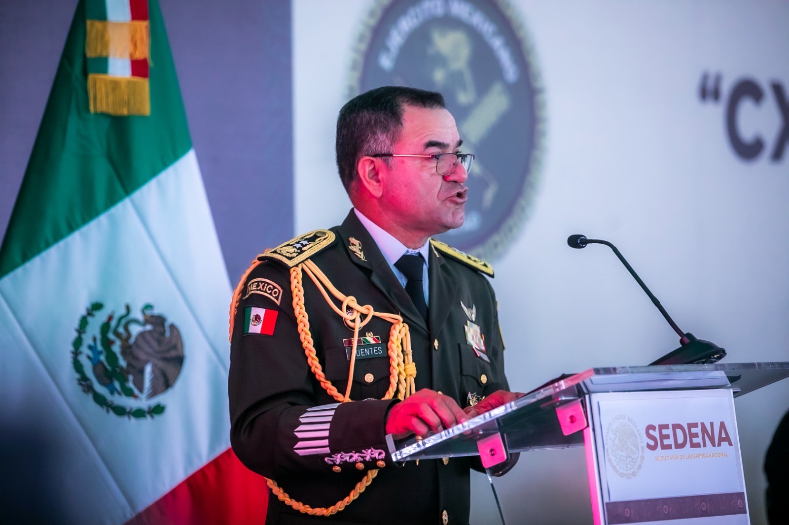 El general Fuentes también refrendó el reconocimiento a las mujeres y hombres que integran esta Fuerza Armada por el trabajo que día a día realizan en beneficio de todos los mexicanos. “Los invito a seguir siendo soldados respetuosos del marco legal y de las institucionales nacionales y a continuar manteniendo el legado que inició hace 111 años con el Ejército Constitucionalista, con el firme propósito de seguir siendo garantes de la soberanía e independencia de nuestro país, velando de manera activa por la seguridad, el bienestar y el progreso de México”, concluyó.