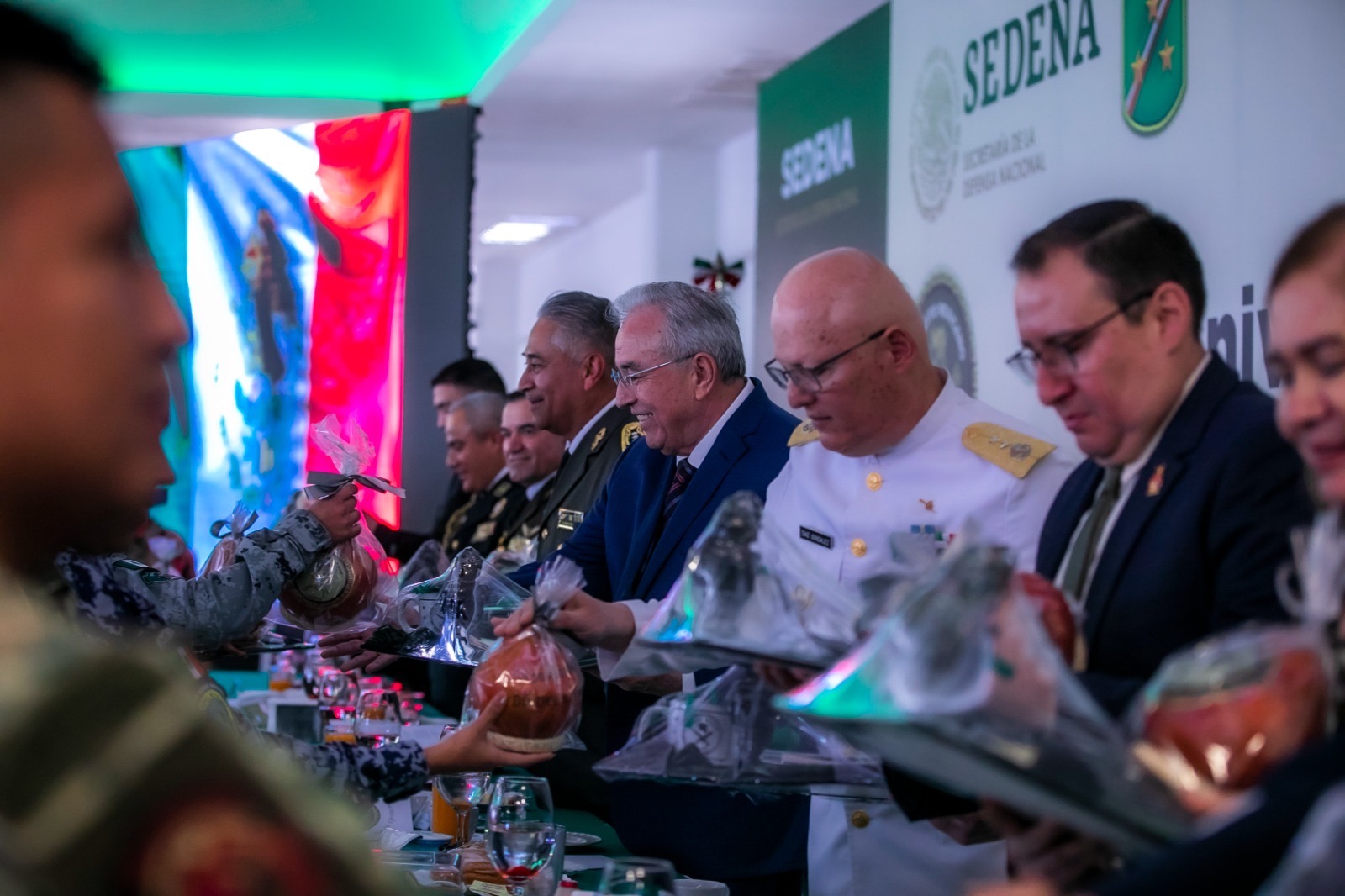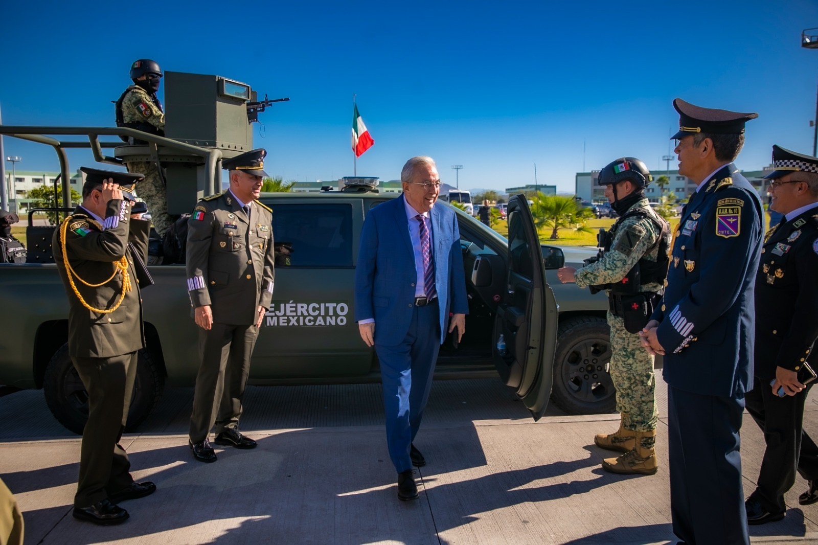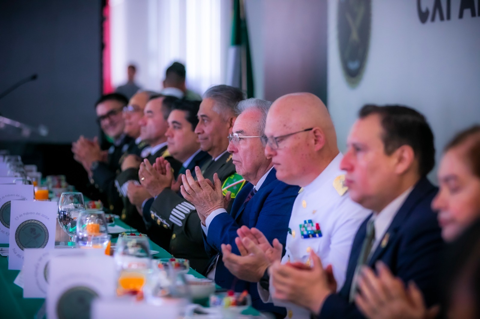 También acompañaron al gobernador Rocha y al general Leana Ojeda en el presídium como invitados especiales, el presidente de la Mesa Directiva del Congreso del Estado, diputado Ricardo Madrid Pérez; el presidente del Supremo Tribunal de Justicia, magistrado Jesús Iván Chávez Rangel; el secretario de Seguridad Pública, general retirado Gerardo Mérida Sánchez; la fiscal general del Estado, Sara Bruna Quiñones Estrada; el comandante de la Octava Zona Naval, vicealmirante Leopoldo Jesús Díaz González Solórzano; el coordinador estatal de la Guardia Nacional en Sinaloa, comisario Fructuoso López Vallejo; el comandante de la Base Aérea Militar Número 10, general de Grupo, José Miguel de Luna Genel; y el delegado de la Fiscalía General de la República, Gonzalo Hernández Durazo.