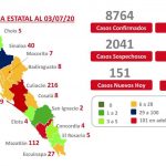 El secretario de Salud en la entidad, Efrén Encinas Torres, informó que este 03 de julio del 2020, Sinaloa registró 151 nuevos casos de Covid-19, con lo que se llega a 758 casos activos, 37 menos que el total de ayer jueves, en virtud de que las últimas 24 horas se registraron también 27 decesos y 161 pacientes recuperados.