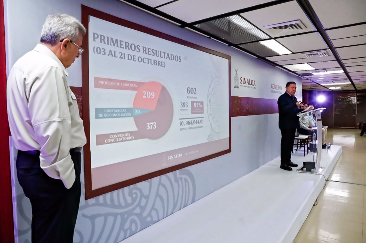 «A partir de la entrada en vigor de esta reforma en Sinaloa, se creó el Centro Estatal de Conciliación Laboral que tiene sede en Culiacán, dos delegaciones, una en la ciudad de Los Mochis para la zona norte, una en la ciudad de Mazatlán para la zona sur y próximamente, por instrucciones del gobernador, estaremos habilitando una sede en la ciudad de Guasave. Es importante señalar que a partir de estos convenios se ha logrado que 10 millones 964 mil pesos hayan sido materia de estos convenios, todos en beneficio por supuesto del trabajador», indicó el Secretario General.