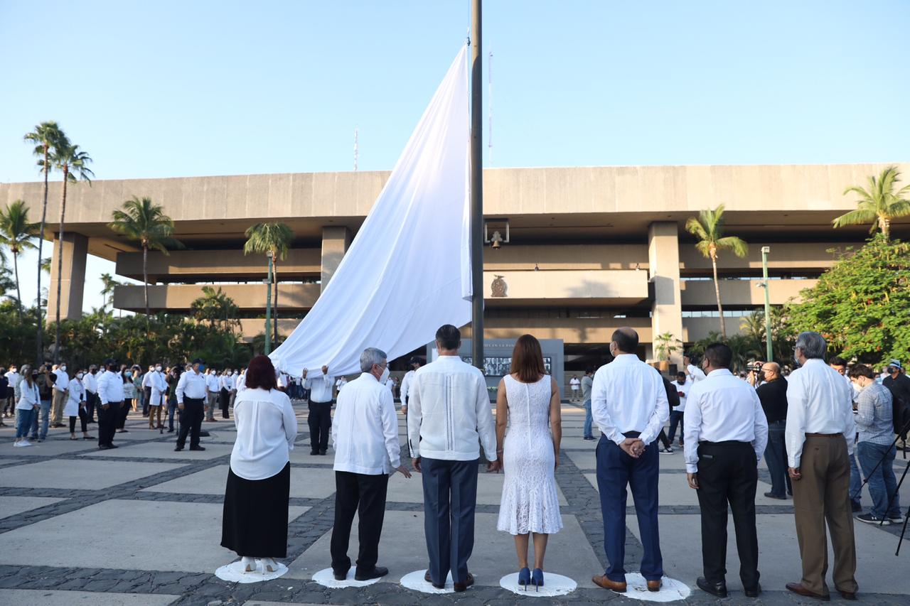 El gobernador del estado izó una bandera blanca a toda asta en la explanada de Palacio de Gobierno, en el marco del Día del Médico.