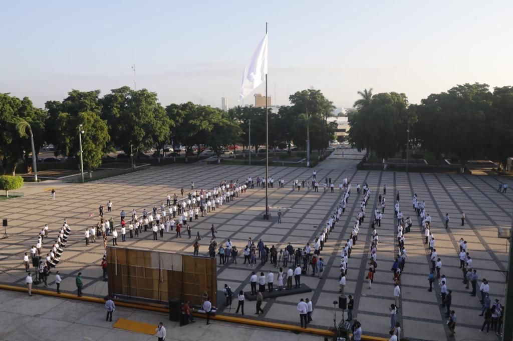 Destacó que hoy es un día más que trascendente, y la mejor forma de reconocer al gremio de salud, a todos los trabajadores, es precisamente en esta mañana con el izamiento de la bandera blanca.