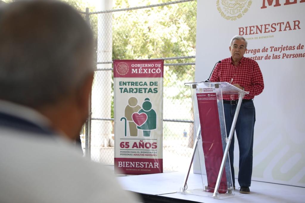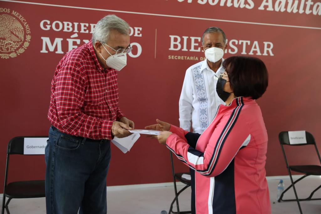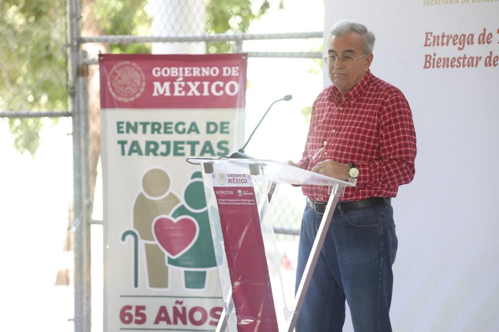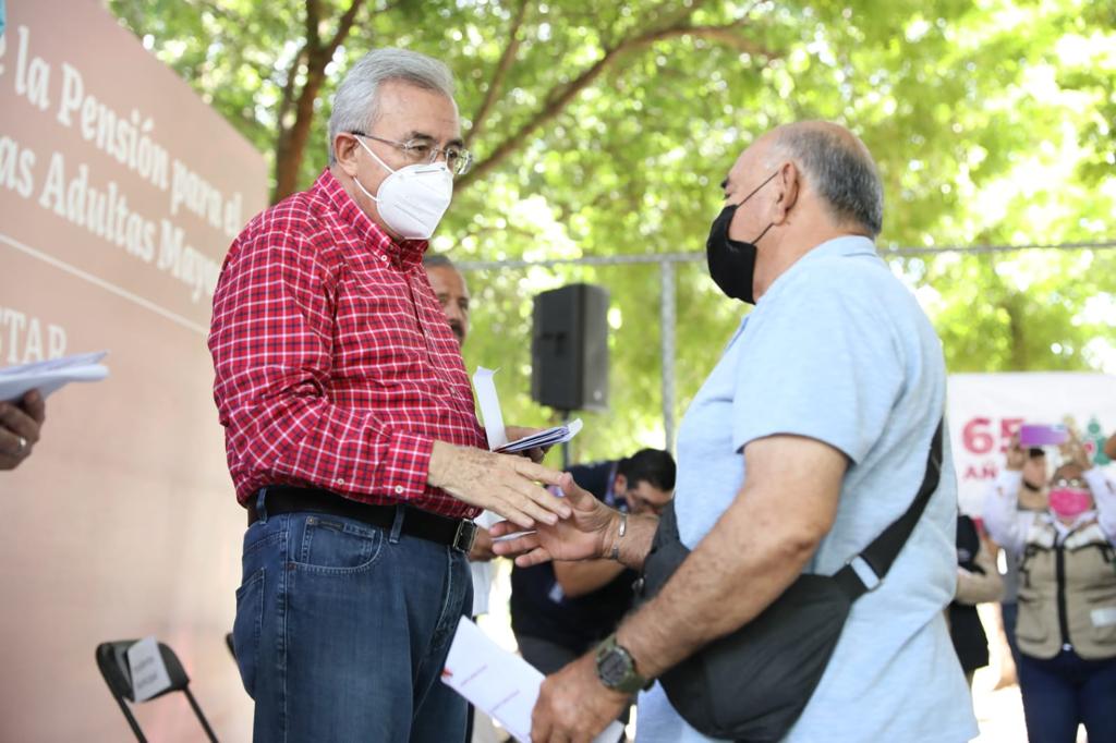 El mandatario estatal acudió este domingo por la mañana a las canchas deportivas del Centro Cívico Constitución, sede en Culiacán donde se paga en efectivo este apoyo de 3 mil 100 pesos bimestrales, el cual a partir de ahora se depositará en la Tarjeta del Bienestar que será entregada a cada habitante mayor de 65 años de edad, inscrito en el programa.