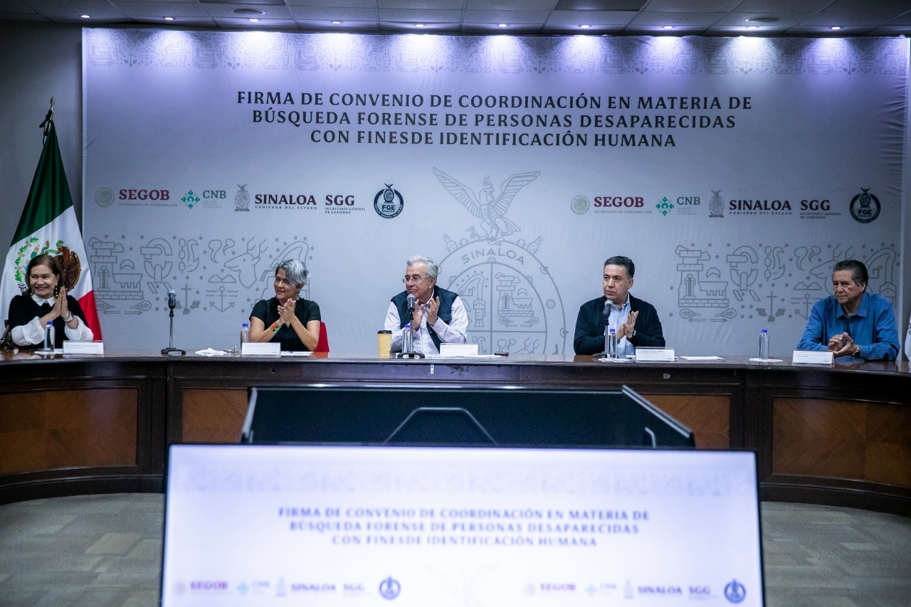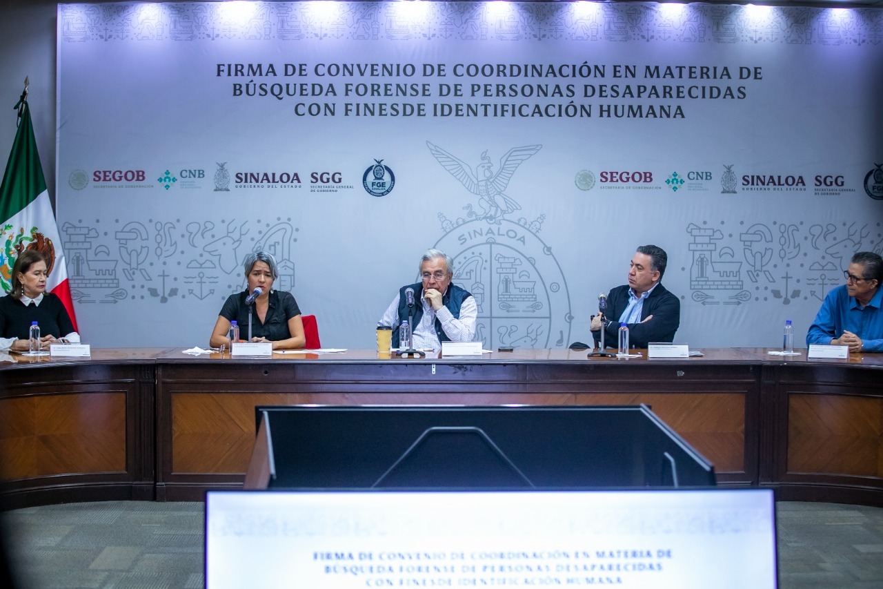 “No se trata sólo de una firma o de un papel lo que está sucediendo el día de hoy, se trata de responder como estado, las diferentes instituciones para la búsqueda e identificación de personas desaparecidas, las familias nos dicen todos los días que falta coordinación entre las instituciones a veces nos dicen que nos echamos la bolita y lo que estamos haciendo el día de hoy es sumar a un proceso que ya empezó por instrucción del gobernador hace ya algunos meses para que en Sinaloa sigamos construyendo en Sinaloa una respuesta homologada a todo el resto del país en materia de identificación”, expresó.