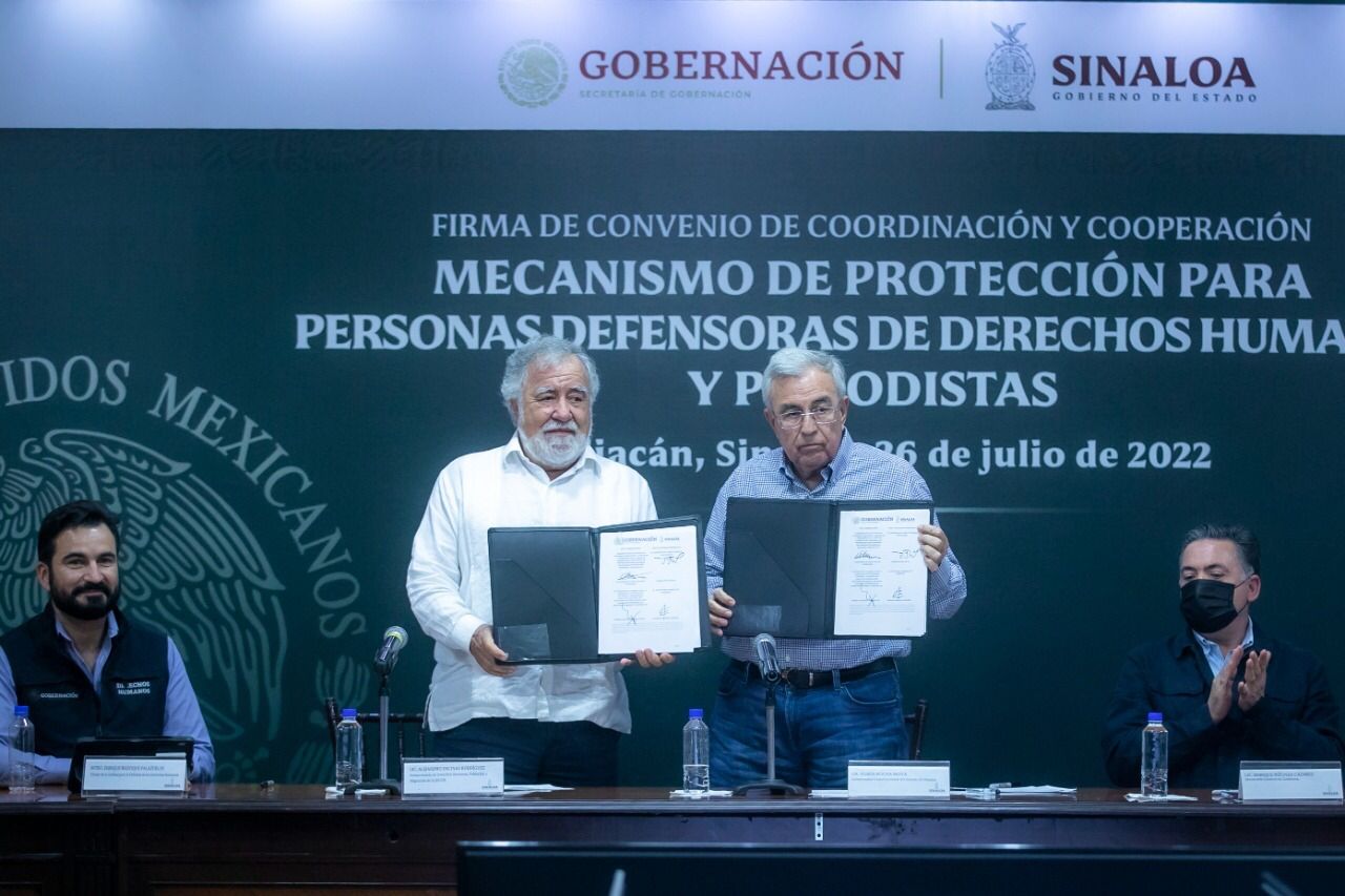 Por su parte, el Gobernador Rocha Moya recordó que además de este convenio, recientemente en Sinaloa se realizó la creación del Instituto para la Protección de Personas Defensoras de Derechos Humanos y de Periodistas, comprometiéndose a mantener una estrecha coordinación con las autoridades federales y una sinergia respetuosa con los comunicadores.