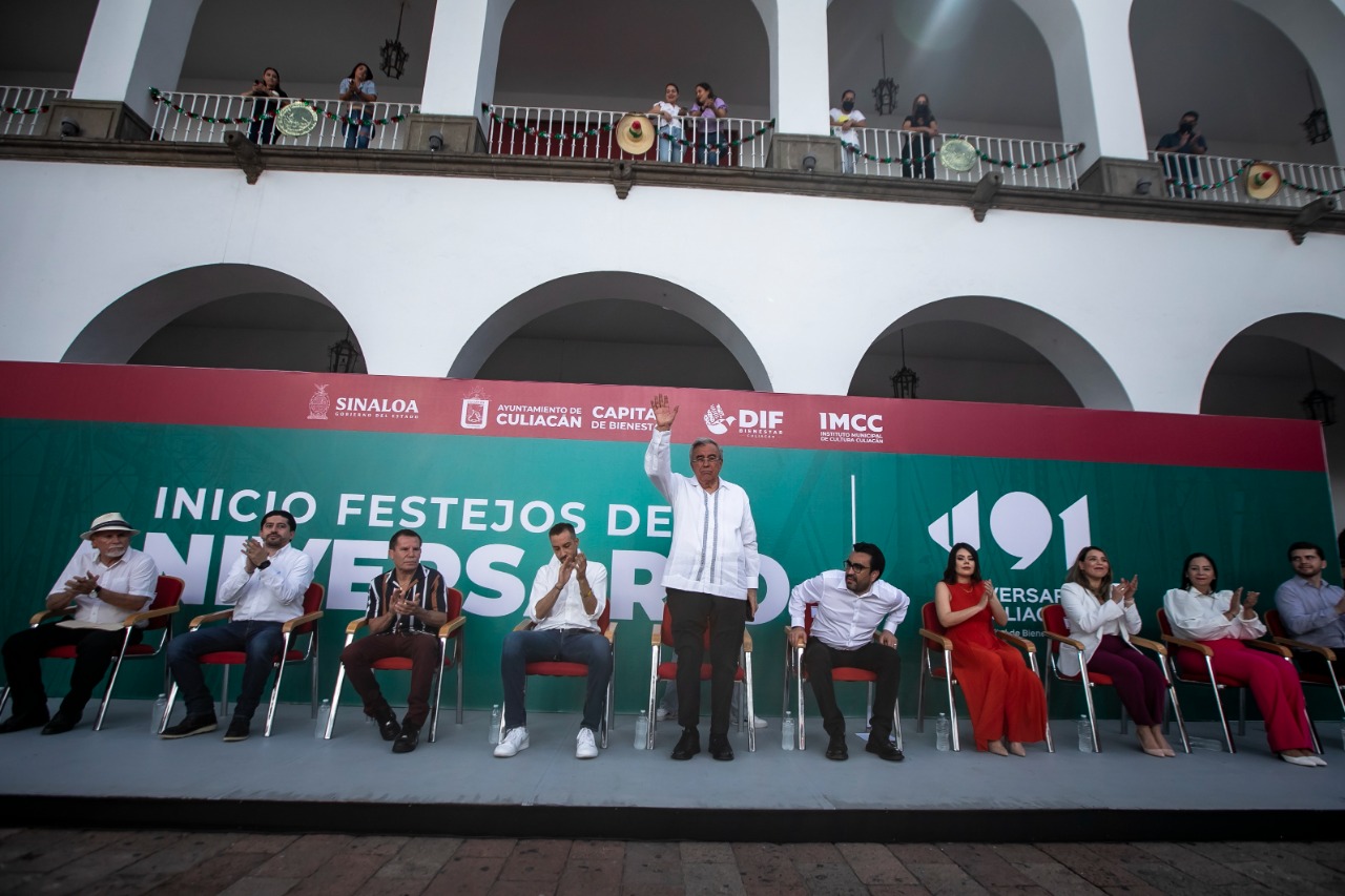 Culiacán, Sinaloa, 23 de septiembre del 2022.- Para conmemorar el aniversario número 491 de la fundación de Culiacán, el gobernador Rubén Rocha Moya, acompañado del alcalde de Culiacán Juan de Dios Gámez Mendívil y otras autoridades, inauguró los festejos que constarán de 340 eventos artísticos, culturales y deportivos en la ciudad.