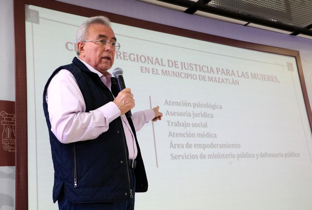 Por lo que toca al primero de los eventos, la inauguración del Centro de Justicia para Mujeres de Mazatlán, el gobernador del estado informó que es el mismo modelo que se tiene aquí en Culiacán, con una capacidad para atender hasta a 60 mujeres diariamente y dar albergue temporal hasta a 10 familias.