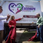 El mandatario estatal fue recibido por la presidenta municipal de Escuinapa, Blanca Estela García Sánchez, en la Unidad Deportiva “Benito Juárez”, para poner en marcha este programa que consiste en acercar los servicios que ofrece el Gobierno del Estado a la ciudadanía y entrega de apoyos de manera gratuita, como despensas, lentes, consultas de medicina general con su respectivo medicamento, entre muchas otras cosas.