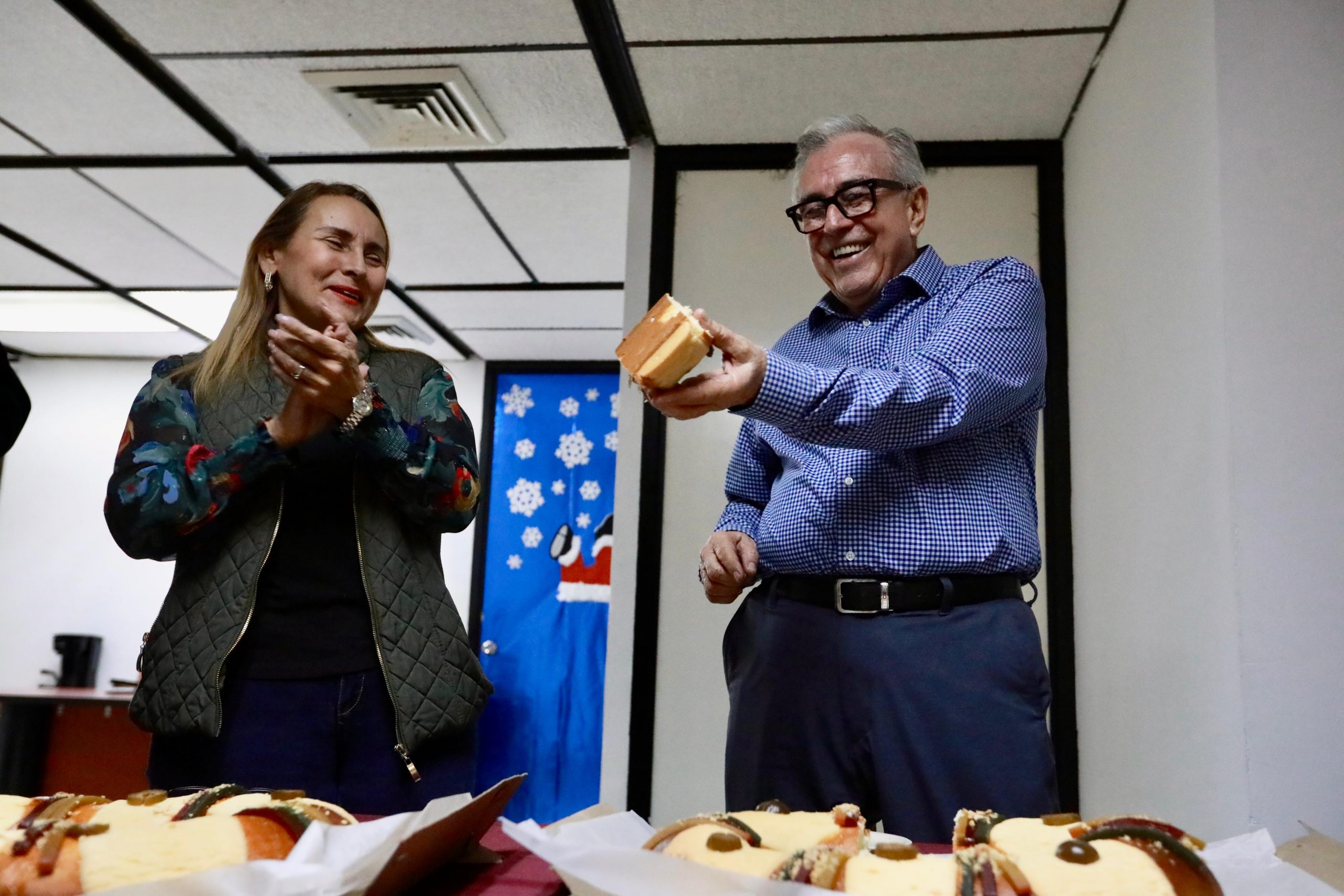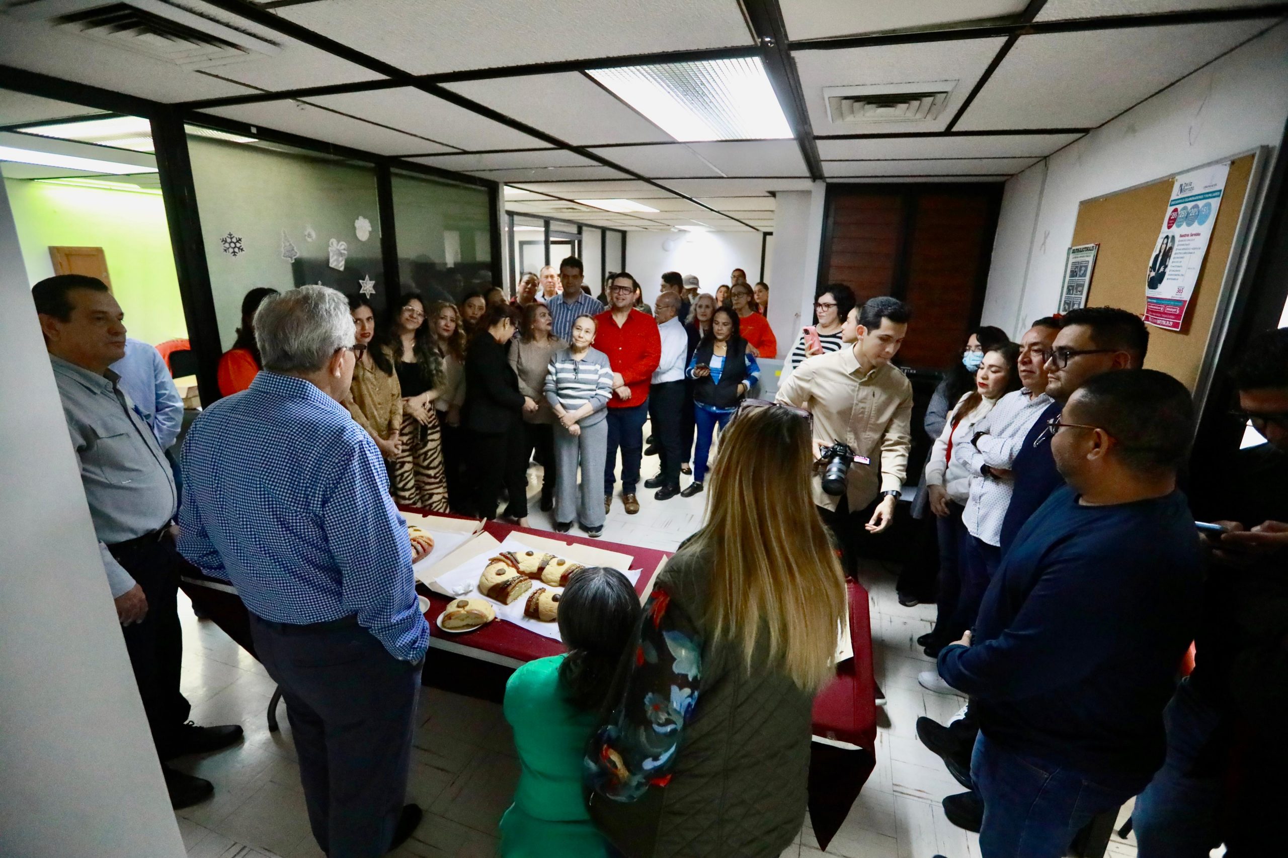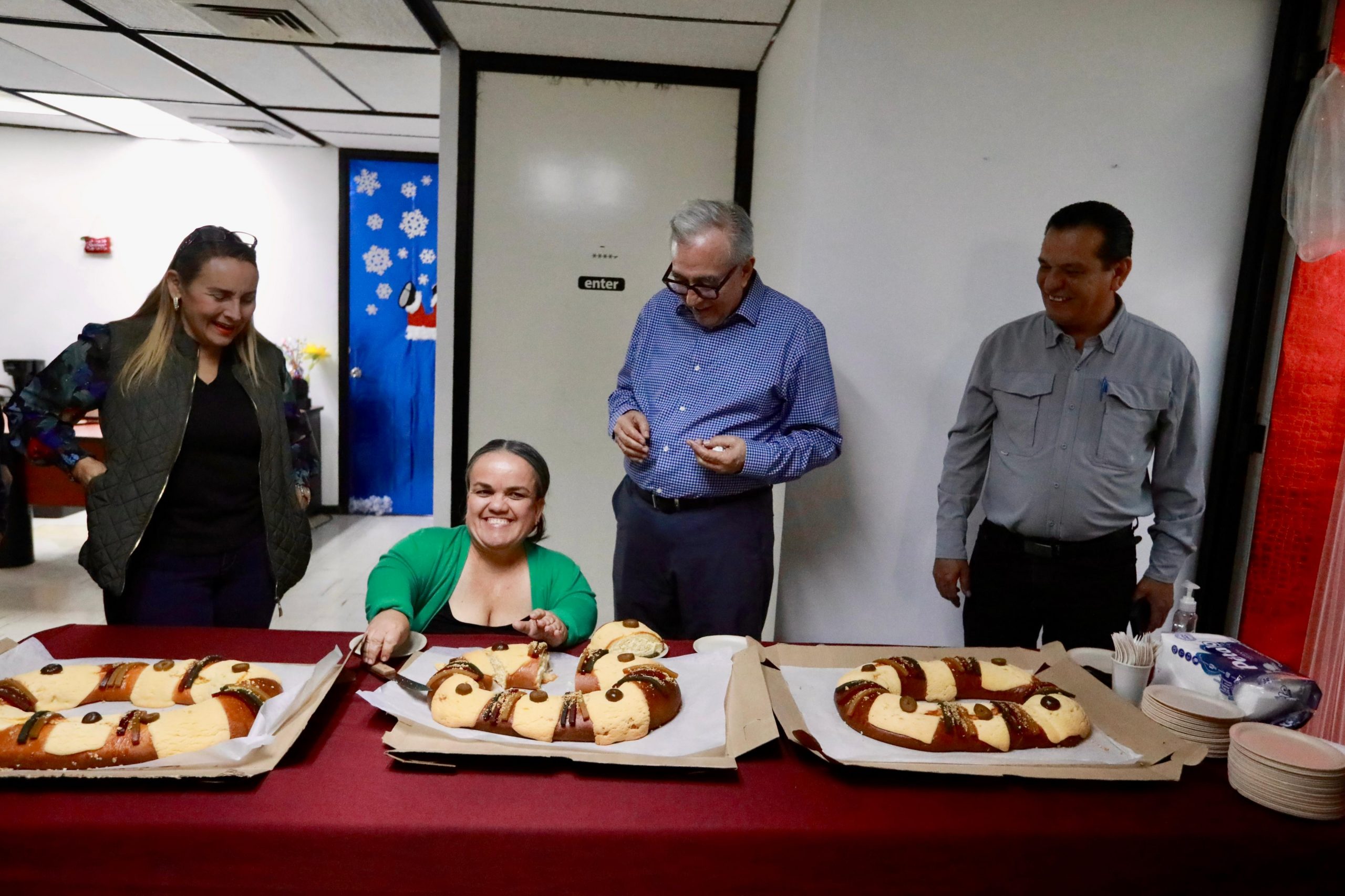 Ya poco después del mediodía, el gobernador Rocha subió al segundo piso, para visitar al personal de la Coordinación de Comunicación Social y Radio Sinaloa, con quienes también compartió la tradicional rosca de reyes, y al partir su pedazo, que le vuelve a tocar el “monito”. “No les digo, qué tino traigo, llevo tres de tres, ya mejor le paro”, y se despidió alegremente.