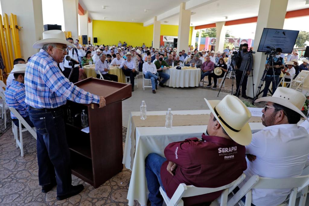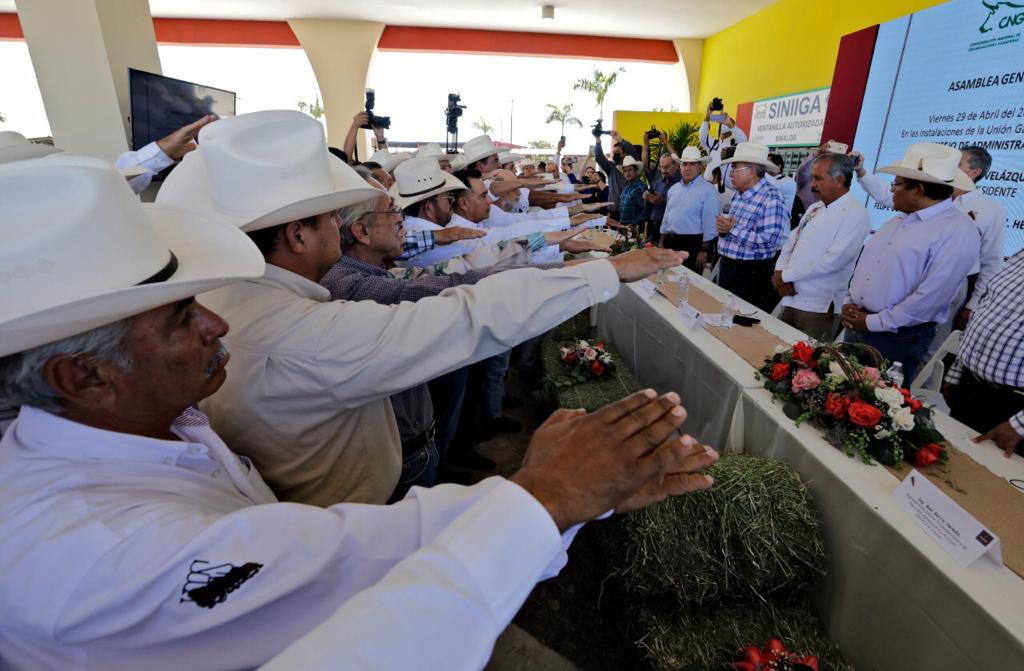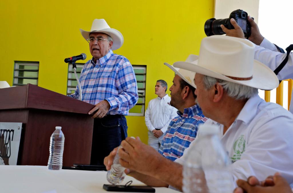 Culiacán, Sinaloa, 29 de abril de 2022.- El gobernador Rubén Rocha asistió a la asamblea General ordinaria donde fue electo por unanimidad Régulo Terrazas como nuevo presidente de la Unión Ganadera Regional de Sinaloa, quien sustituye a Luis Fernando Velázquez Serrano, ahí el mandatario refrendó su compromiso de apoyar al sector ganadero de Sinaloa, en especial dijo a los pequeños productores pecuarios.