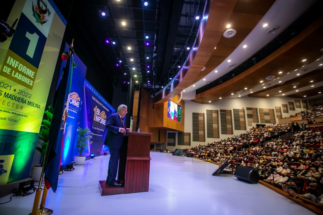El mandatario estatal asistió al primer informe de labores del rector Jesús Madueña Molina.