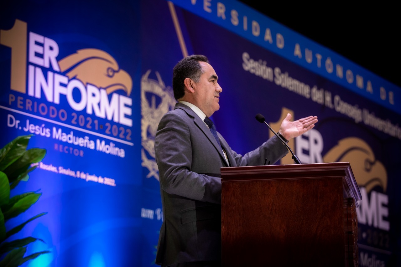 “Como un acto de entera justicia, quiero agradecer ampliamente a las muchas personas que nos han ayudado a sacar adelante las acciones emprendidas, en primer término agradezco la amistad personal y el respaldo institucional de nuestro gobernador, el doctor Rubén Rocha Moya, quien en todo momento ha sido respetuoso de la autonomía universitaria. Asimismo, a través de numerosos hechos concretos ha honrado su condición de universitario, demostrando su afecto a la institución. Muchas gracias por ser el aliado incondicional que tiene la UAS”, dijo.