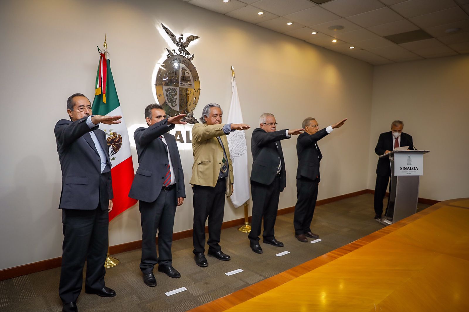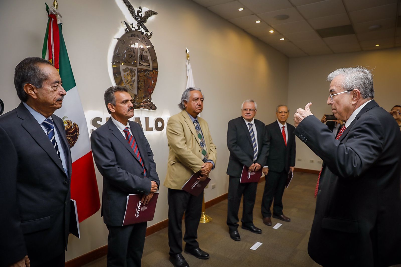 En el Salón de Gobernadores, el gobernador Rocha le tomó la protesta de ley a Jesús Aarón Quintero Pérez, como rector de la Universidad Pedagógica del Estado de Sinaloa; a Víctor Manuel Díaz Simental, como rector de la Universidad Tecnológica de Culiacán; a Juan Manuel Mendoza Guerrero, rector de la Universidad Tecnológica de Escuinapa; e Ismael Montoya Ojeda, como director general del Instituto Tecnológico Superior de Eldorado.