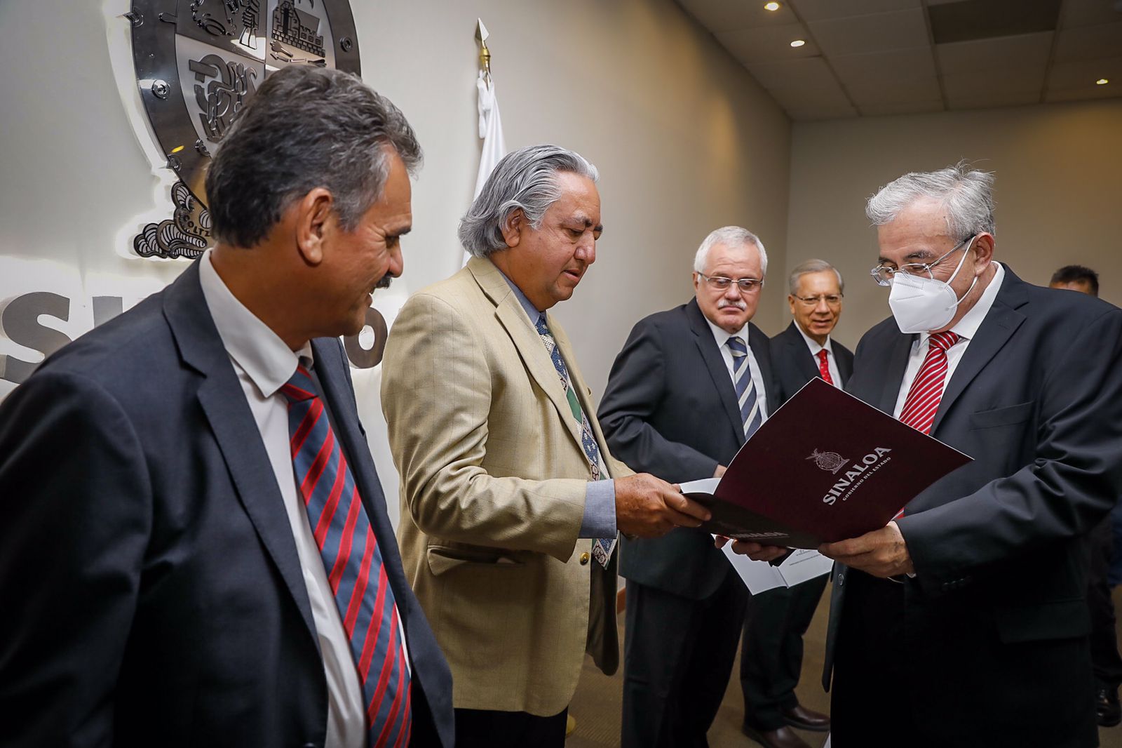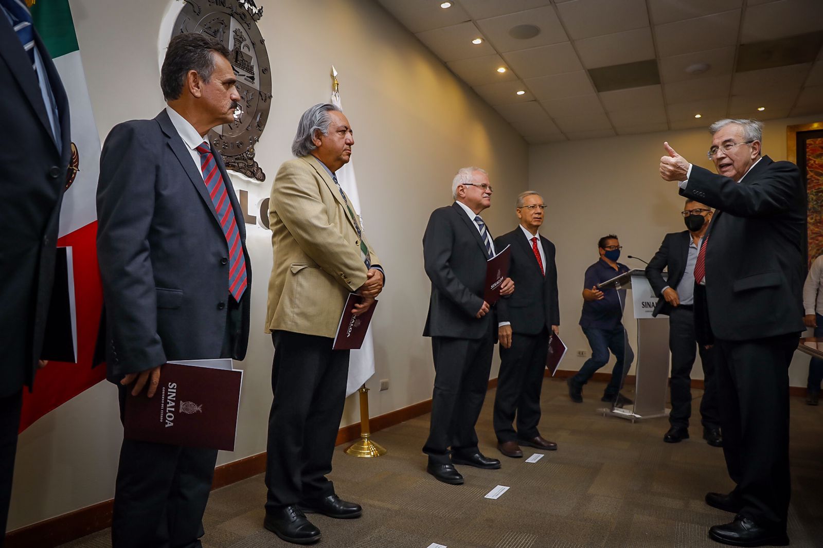 Culiacán, Sinaloa, a 25 de noviembre de 2021.- El gobernador Rubén Rocha Moya tomó protesta a los rectores de las universidades públicas, a quienes exhortó a trabajar con ahínco y creatividad para ofrecer a los jóvenes sinaloenses la oportunidad de continuar sus estudios profesionales, a fin de que cuenten con las herramientas necesarias para desarrollarse en los diversos campos laborales que demanda el estado.
