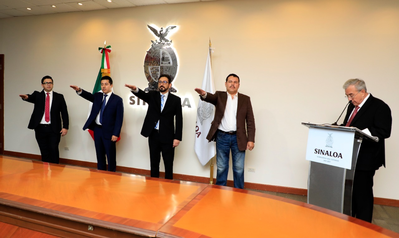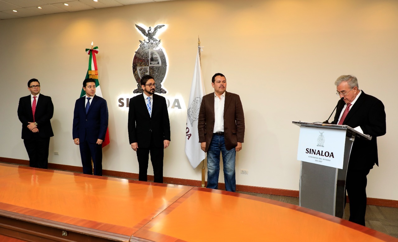 Culiacán, Sinaloa, a 30 de noviembre de 2021. – El gobernador Rubén Rocha Moya tomó protesta a los tres subsecretarios que integran la estructura de la Secretaría de Economía, y también designó como nuevo director general del Sistema Sinaloense de Radio y Televisión, al periodista Edgar Paúl Villegas Salas.